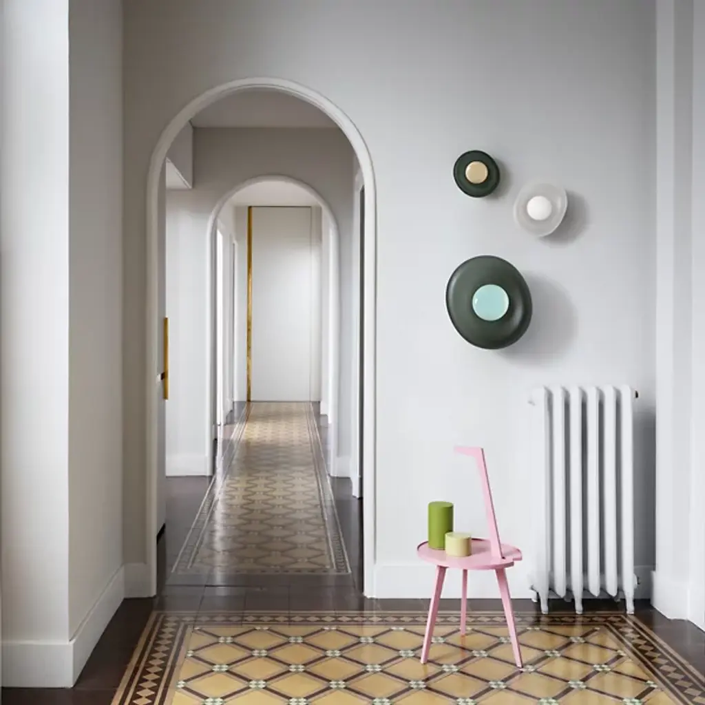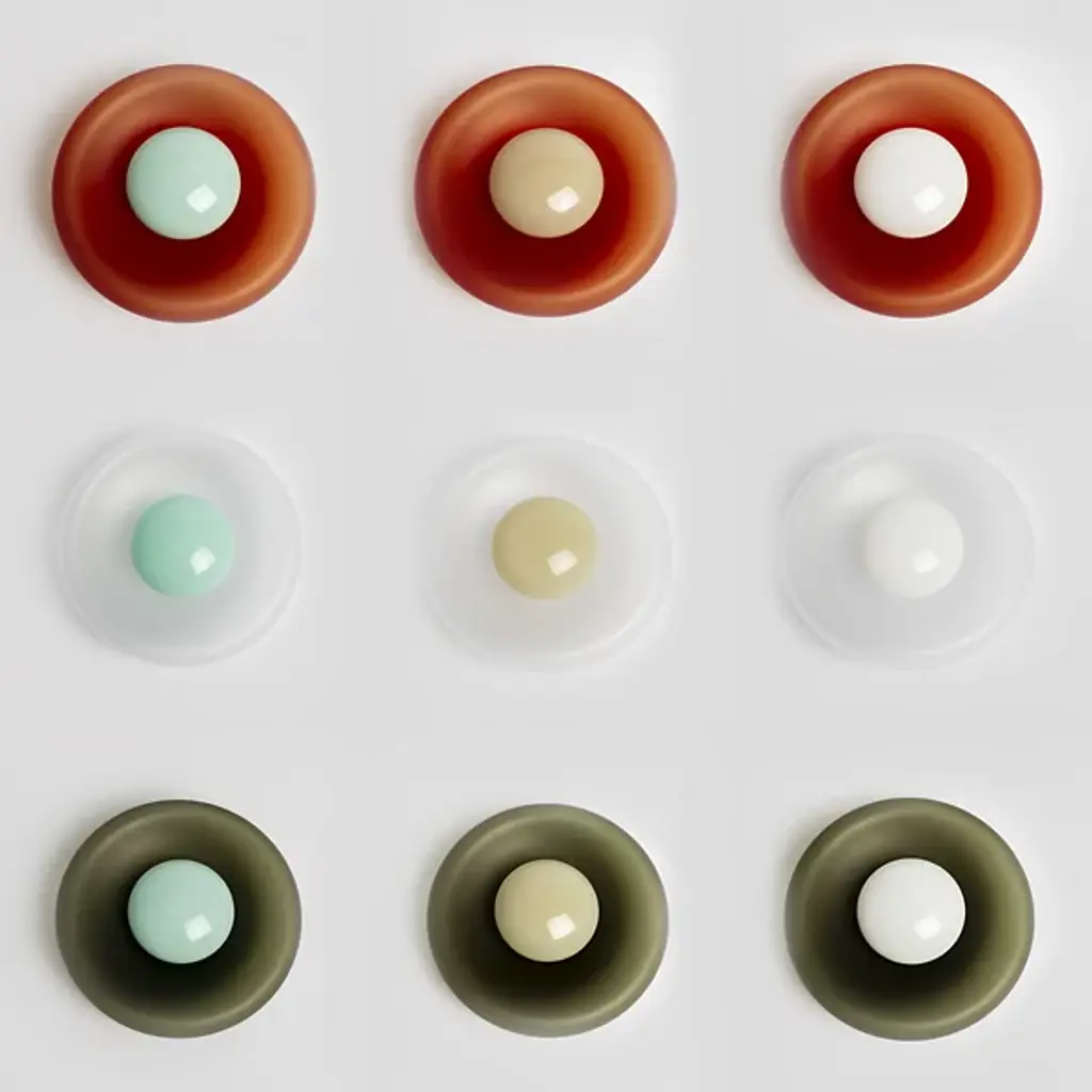 The Pillow Wall / Flushmount from SkLO features a captivating design where glowing glass spheres rest inside the curving recess of a larger frosted glass "pillow." This blend of soft, organic geometry introduces a whimsical yet sophisticated touch to any room. The contrast between the smooth, smaller glass spheres and the concave frosted outer glass creates an intriguing visual complexity, drawing attention to its unique design. Perfect for adding charm and elegance, this sconce elevates any space with its artful, playful appeal.