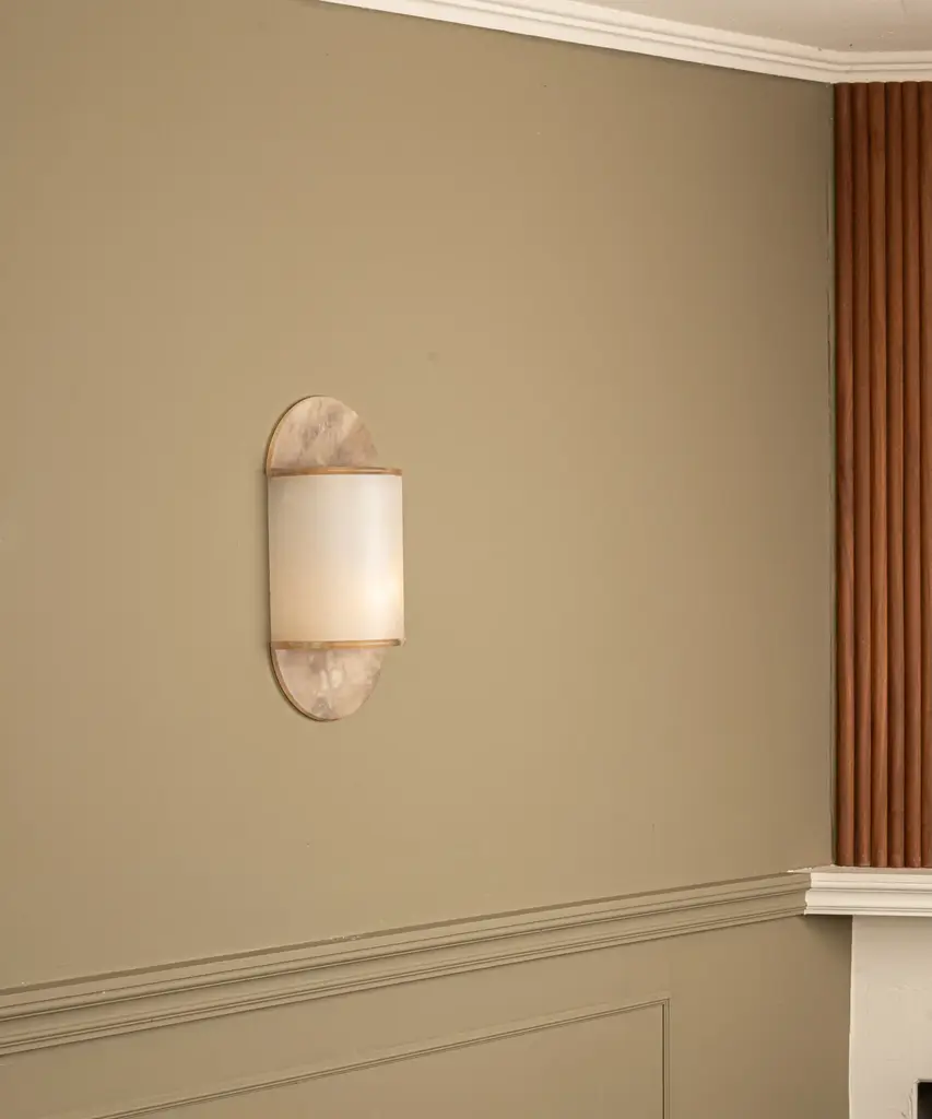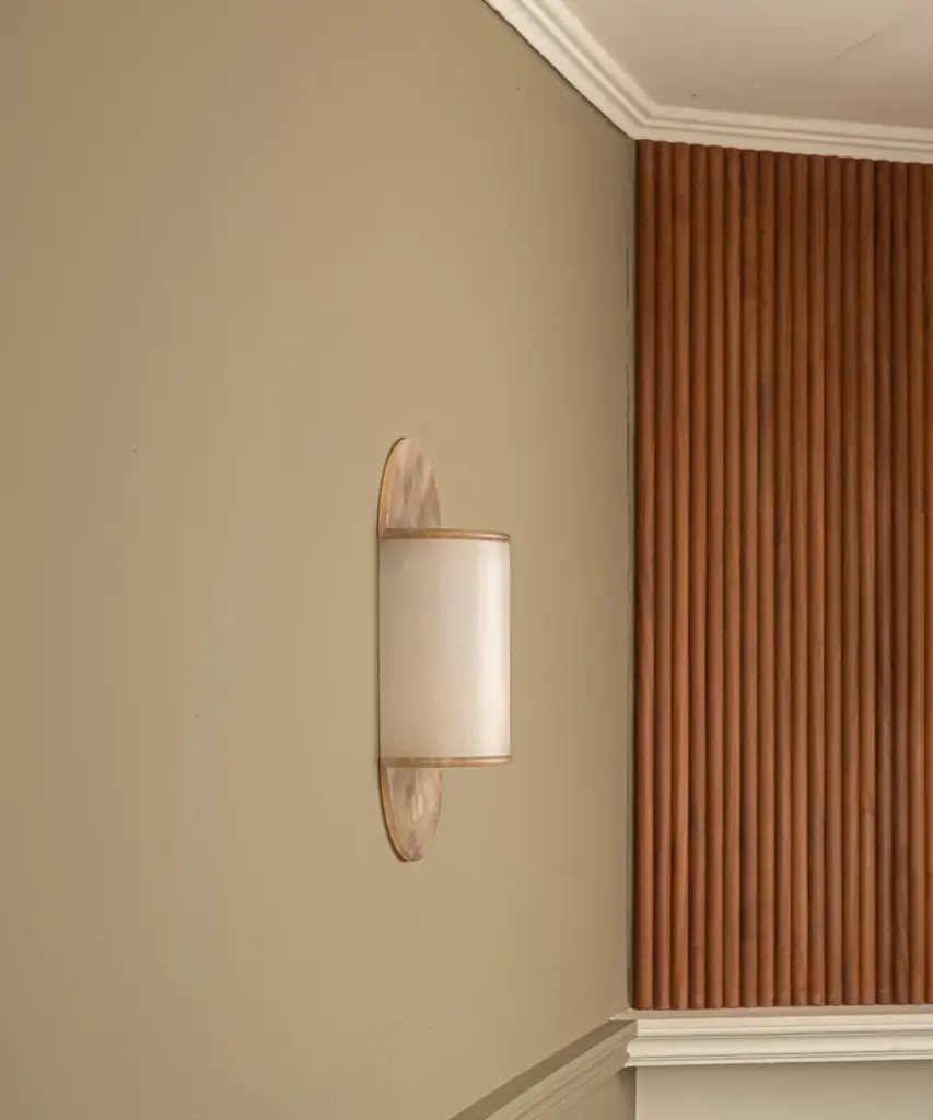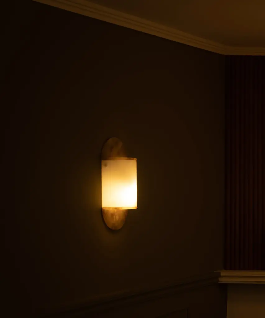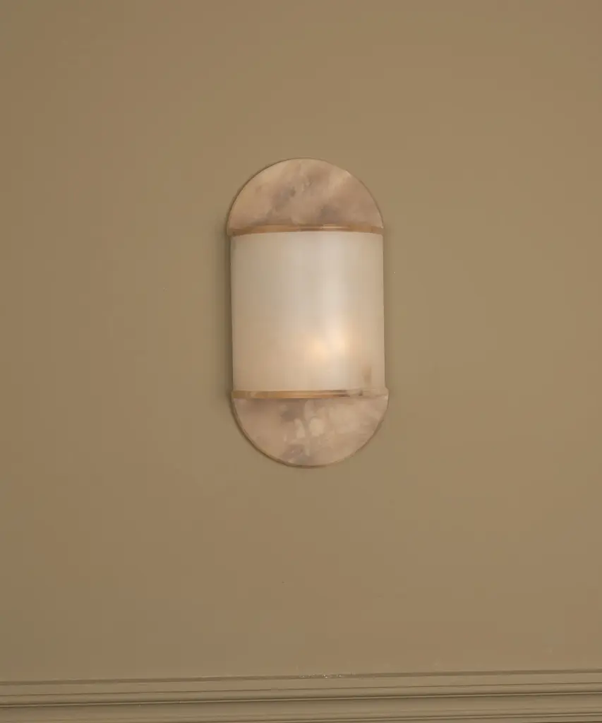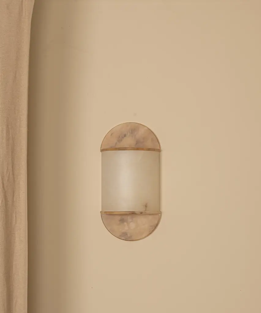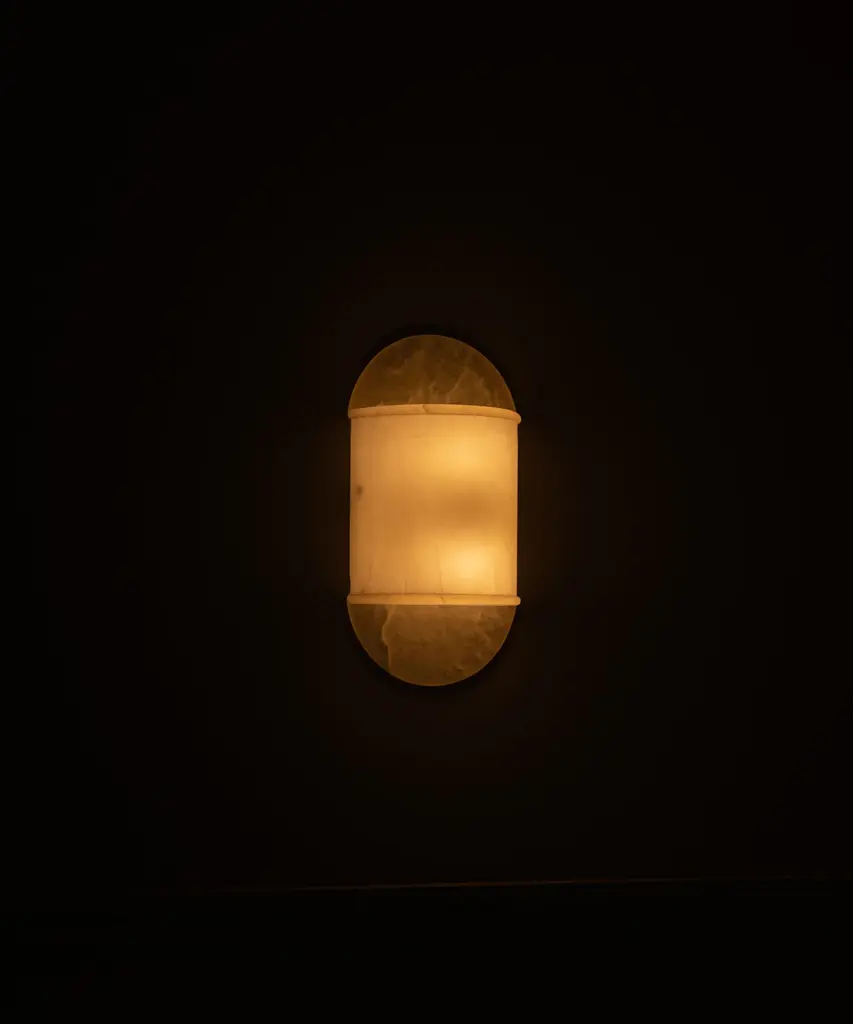 Graceful lines diffuse a soft light through the alabaster stone. Playing with half circles and orientations, the Pilolo wall light is a classic piece for timeless interiors. Each Simone & Marcel lighting fixture is hand-made to order in the designers' studio located in rural Spain. Every product uses only materials and components sourced from local suppliers, all within a short drive of their workshop - an abandoned agricultural warehouse that the couple renovated themselves.