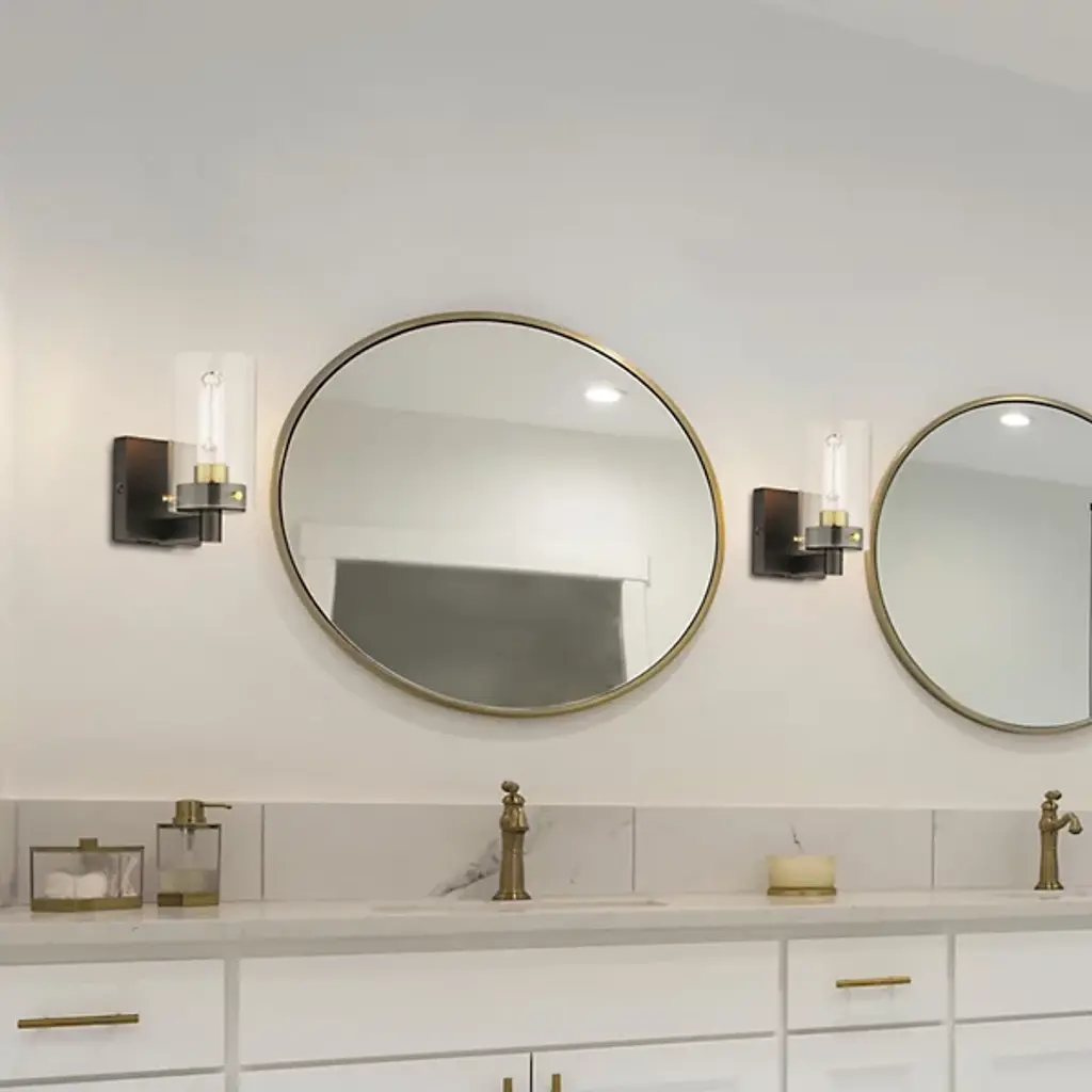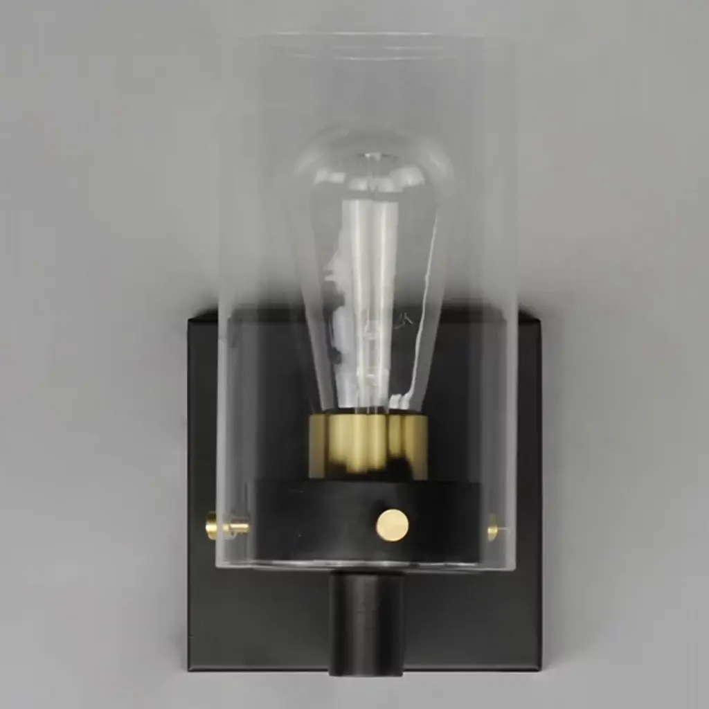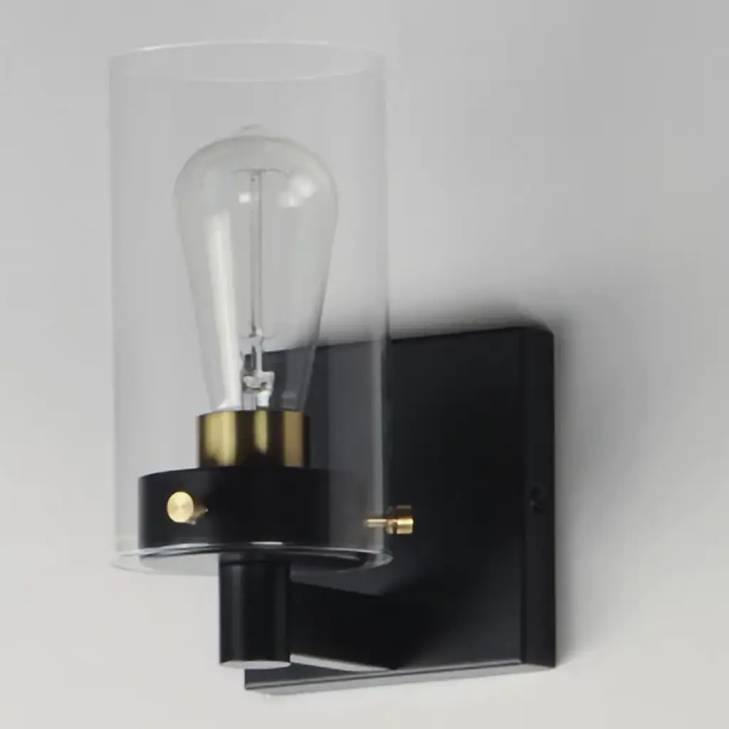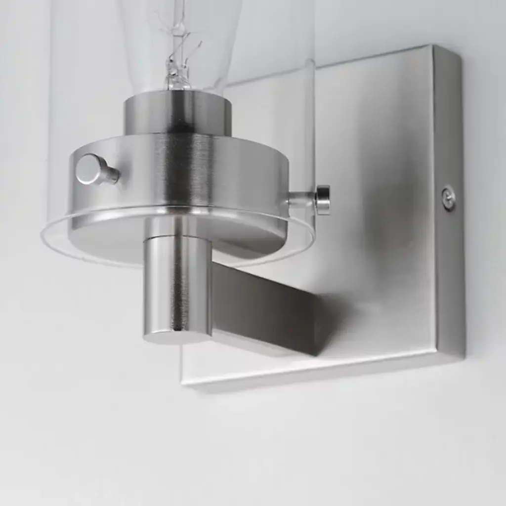 Presented by Maxim Lighting, the Pinn Bath Sconce is a transitionally styled luxury light furnishing. A simple, clear glass cylinder is secured by decorative thumb screws for an industrial-style influence. It is both neutral in design and suitable for damp applications. Display the Pinn as a solo piece or in multiples to complete your lighting design vision.