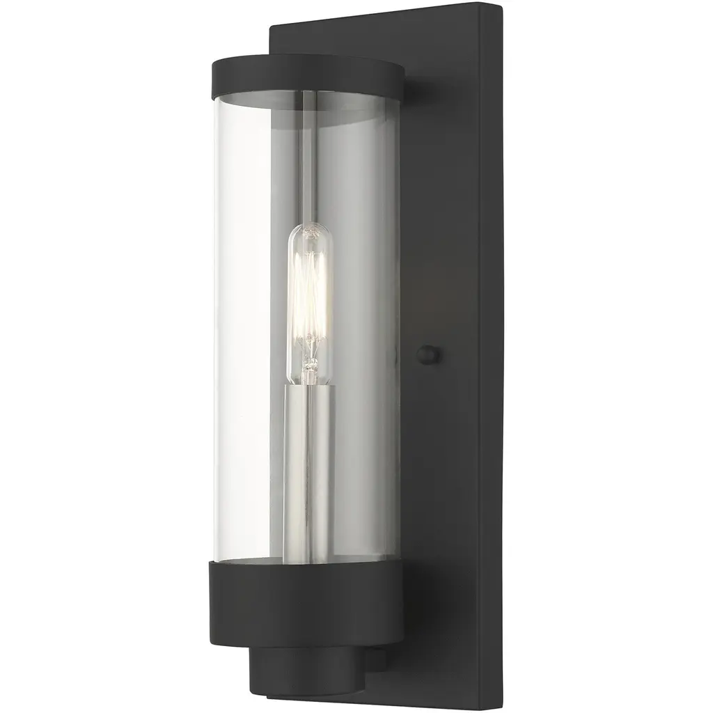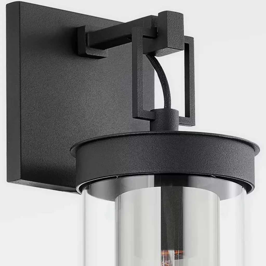 Give your decorative arrangement a touch of class with the Pira Wall Sconce by Troy Lighting. Pira is both upscale and understated. A cylinder of clear glass is layered over a similarly shaped shade of smoked glass, creating an edgy look. The sconce’s machined-metal details boast a square backplate and rectangular arm, giving this light fixture a sophisticated sensibility.