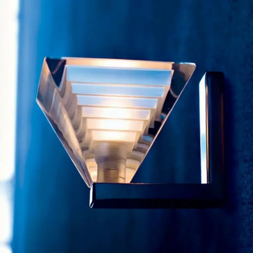The Piramide LED Wall Sconce by Mazzega 1946 is a design from Paolo Piva that embraces the timeless, geometric silhouette for which this design shares its name: the pyramid. Balanced at the end of a simple, bracket-shaped arm, an inverted, structured glass pyramid expands as it reaches up, creating a space for light to playfully filter through. With a smooth exterior and stepped interior, this glass shade adds a dynamic touch to the modern, minimal nature of this wall sconce, bringing a mix of form and function to its environment.