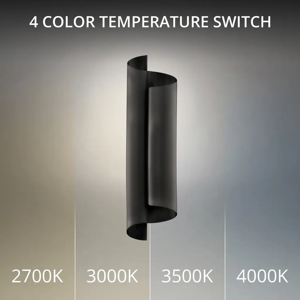 Turning Pointe. Evoking the elegance of a ballerina in mid-pirouette, the Pirouette wall sconce features beautifully textured metal that gracefully wraps to minimize front illumination. Diagonally cut vertical ends add a dynamic touch, directing color temperature adjustable LED light into a warm wall wash above and below. Offered in both 18 and 24-inch sizes, Pirouette is available in aged brass, black or brushed nickel finishes.