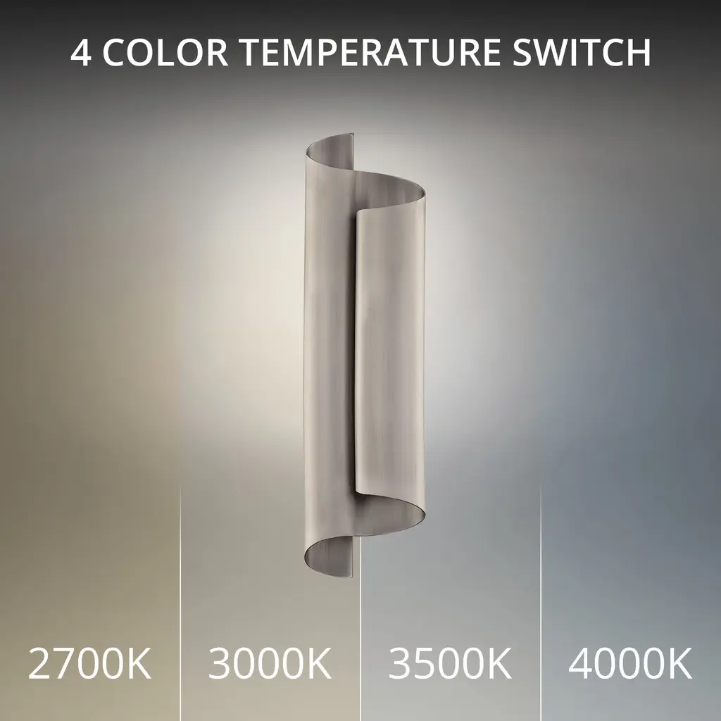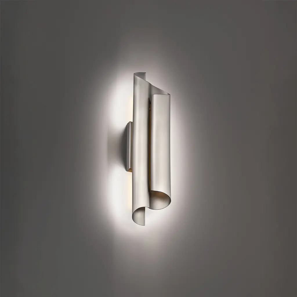 Turning Pointe. Evoking the elegance of a ballerina in mid-pirouette, the Pirouette wall sconce features beautifully textured metal that gracefully wraps to minimize front illumination. Diagonally cut vertical ends add a dynamic touch, directing color temperature adjustable LED light into a warm wall wash above and below. Offered in both 18 and 24-inch sizes, Pirouette is available in aged brass, black or brushed nickel finishes.