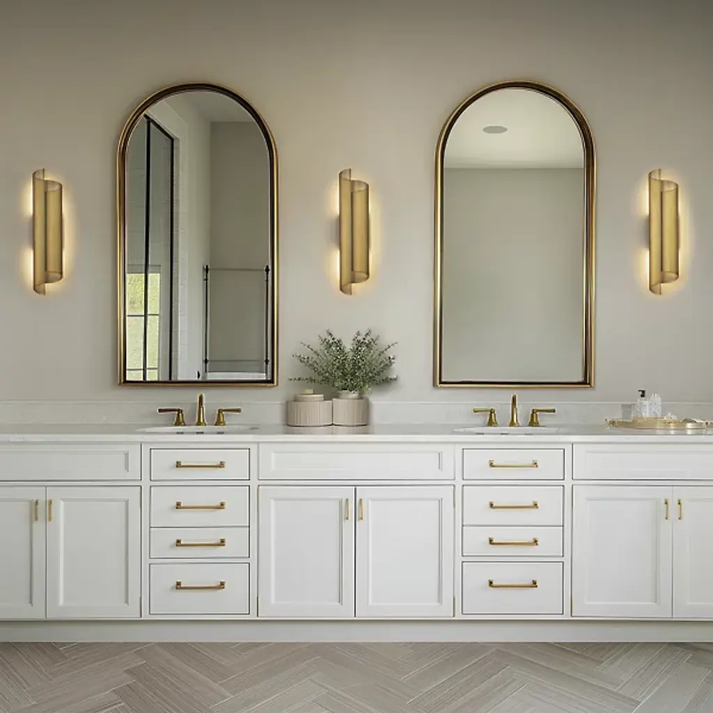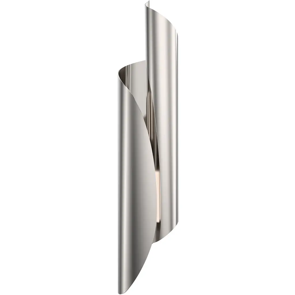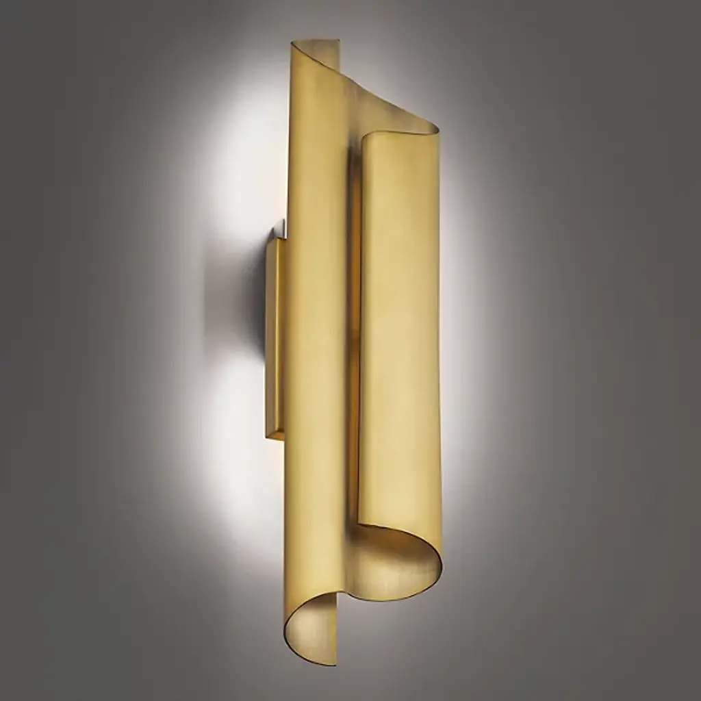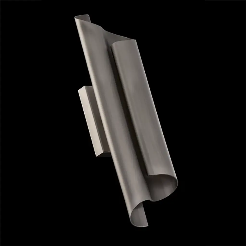 The Pirouette LED Wall Sconce from Modern Forms wraps textured aluminum in a graceful spiral that minimizes direct forward illumination while maximizing ambient wall washing effects. Diagonally cut ends add dynamic geometry to the curved form while directing LED light upward and downward in controlled patterns. The wrapped metal construction creates depth through overlapping surfaces that catch and reflect light differently as the viewing angle changes. Color temperature selection enables customization for various interior applications, while the spiral form adds sculptural interest to wall surfaces without overwhelming smaller spaces.