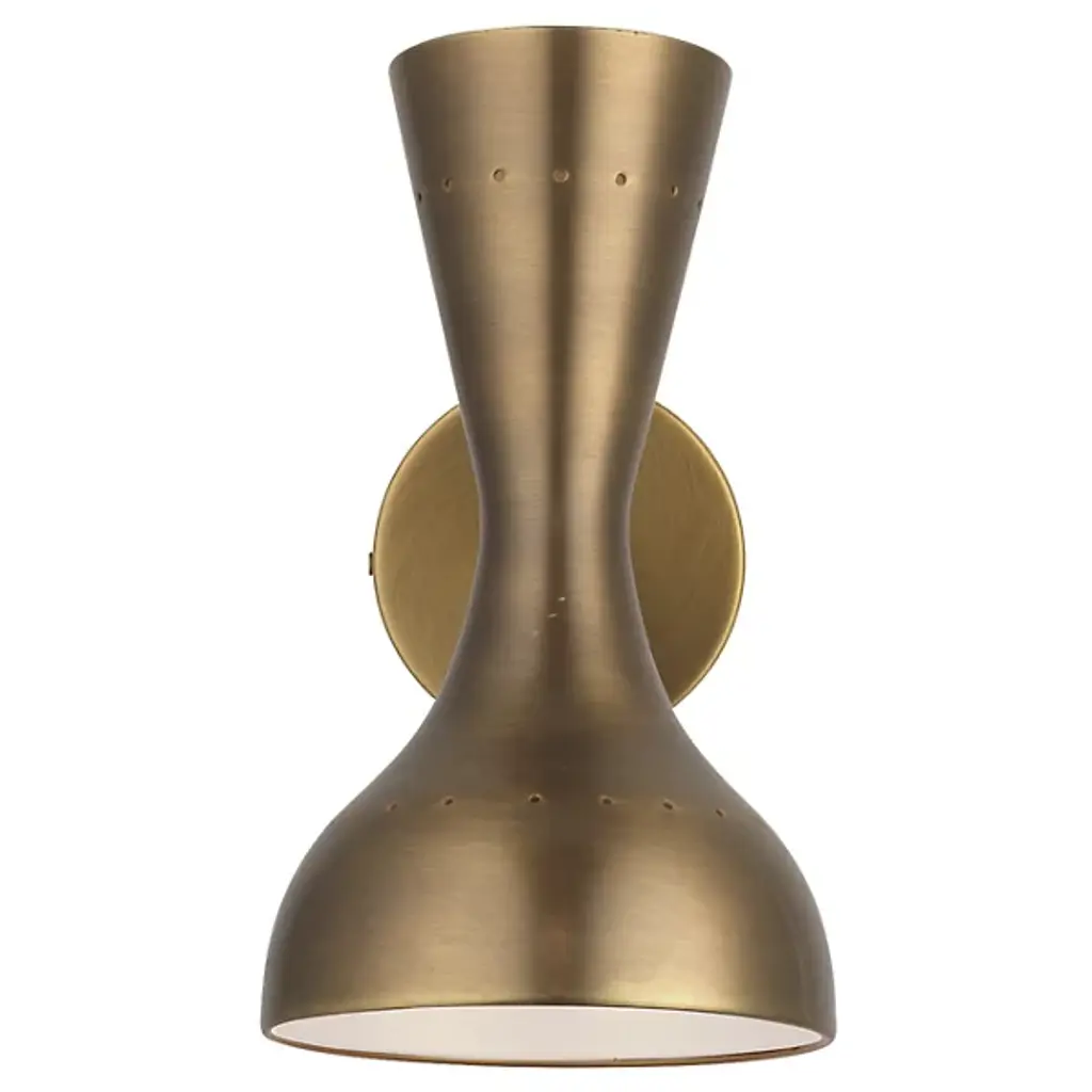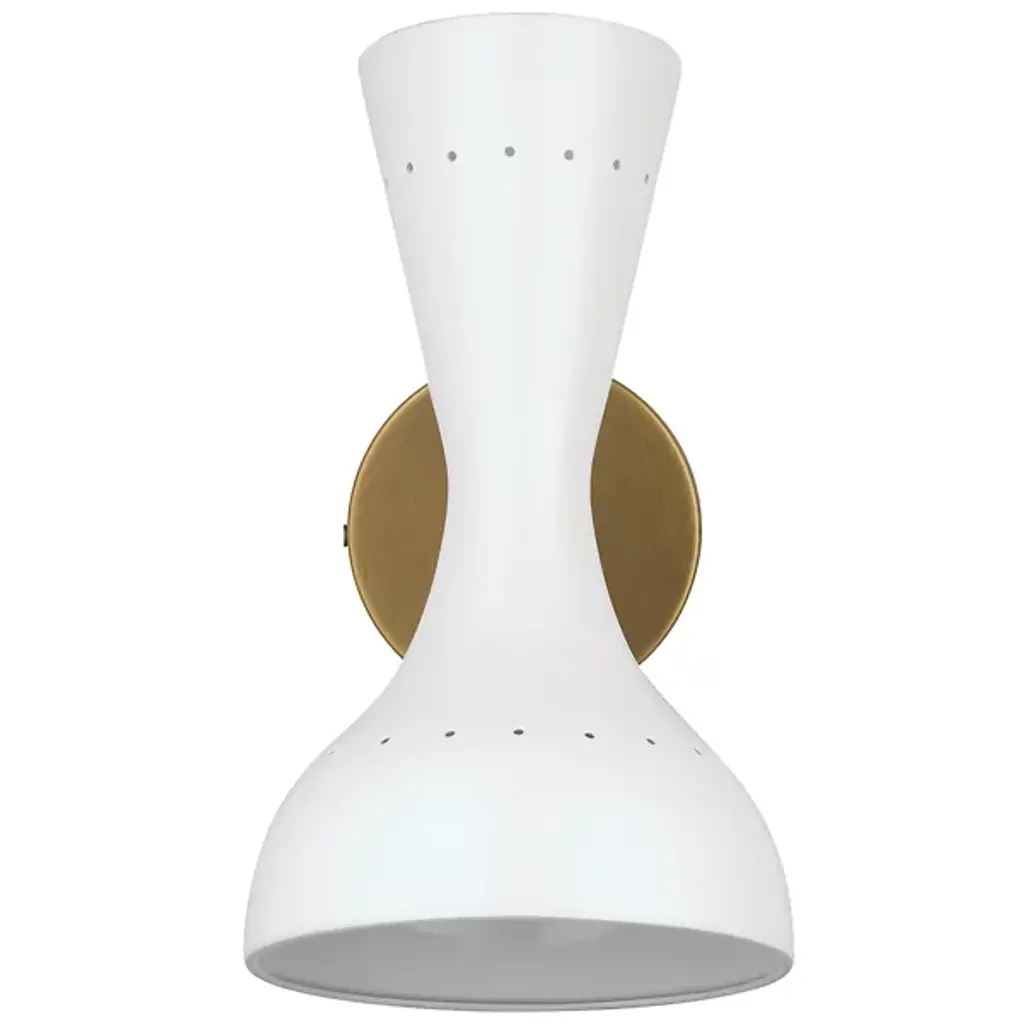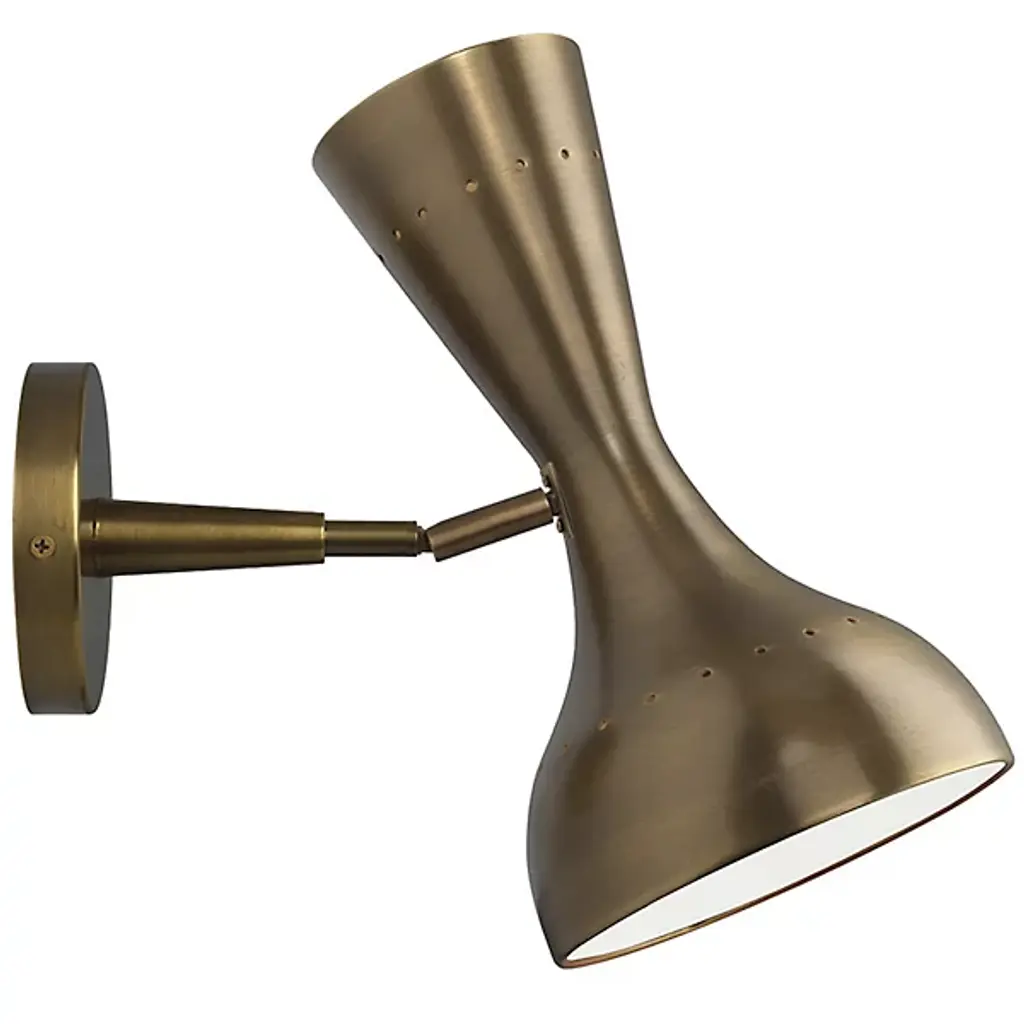 Fall in love with the gorgeous silhouette and the dynamic glow of the Pisa Swing Arm Wall Sconce from Jamie Young Co. A metal backplate evocative of mid-century modern design holds up the piece with clean shapes and an angle-adjustable arm. Its shade flows gently like an hourglass, elegant perforations circling the top and bottom delineating a dual lighting construction. The coned opening at the top facilitates a soft ambient glow that splashes against its mounted wall, while the curvy opening lends to a more focused downlight effortlessly adjustable to your liking.