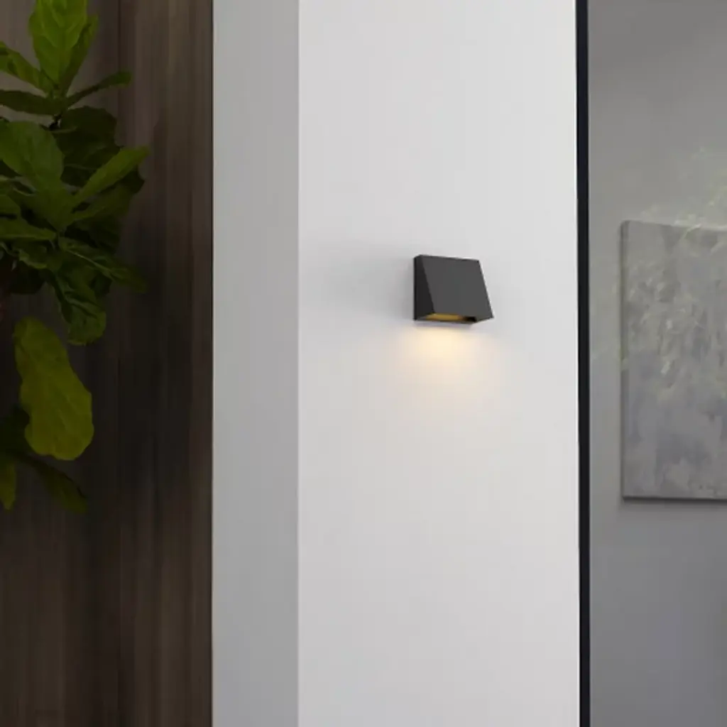 The Pitch LED Indoor/Outdoor Wall Sconce from Visual Comfort Modern presents designer Sean Lavin's geometric approach to directional lighting. Lavin angles a simple square form to create a dramatic light projection suitable for both interior hallways and exterior applications. The sconce's sharp diagonal cut directs the integrated LED output where needed, whether illuminating a corridor or an outdoor entryway. Die-cast aluminum construction with stainless steel hardware provides durability, while UV-stabilized frosted acrylic diffuses the light evenly. The energy-efficient LED source delivers ample illumination without excessive power consumption in either setting.