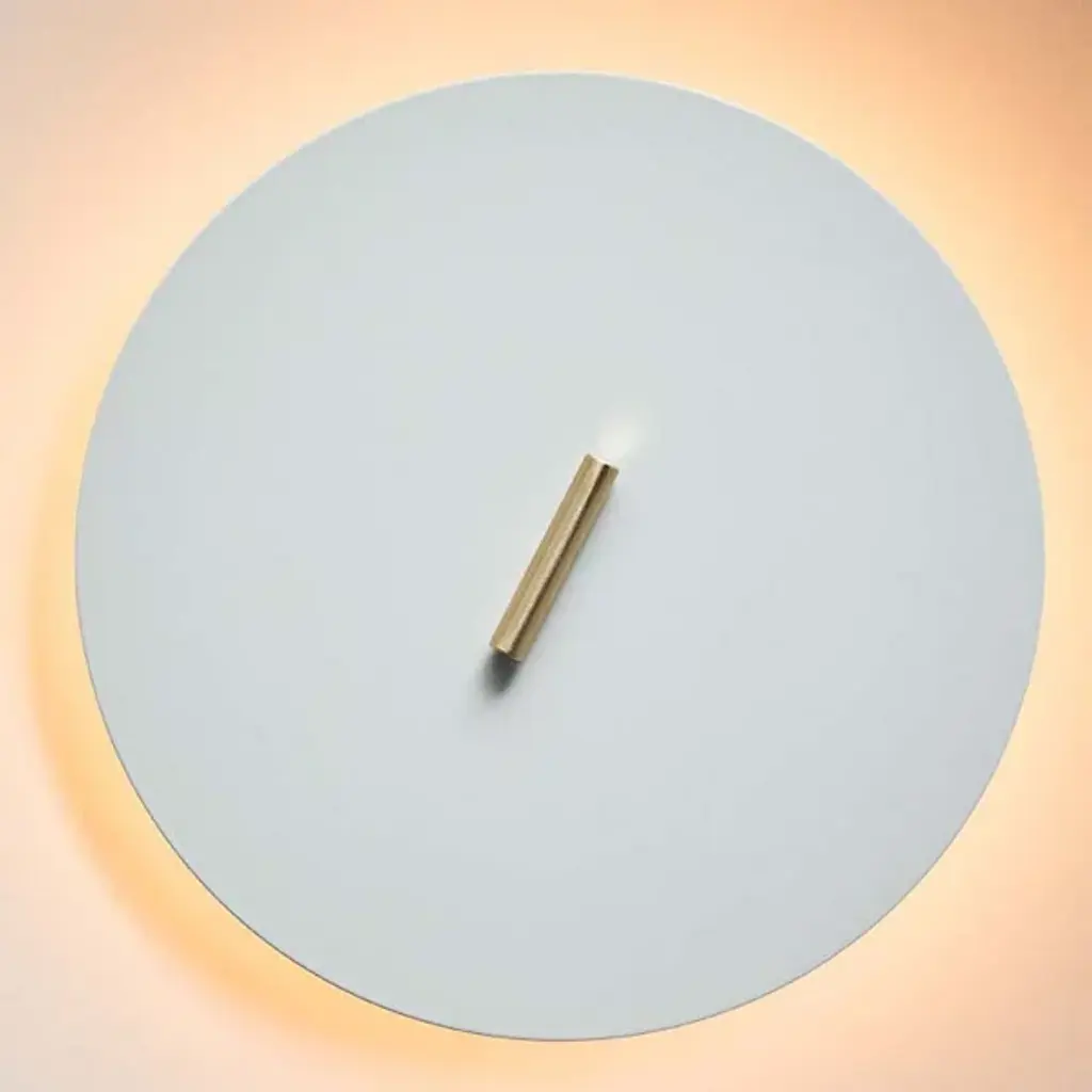 Add a simple wall enhancement with the captivating circular lines of the Pith LED Wall Sconce from Roll & Hill. An ADA-compliant example of California Modern design from the early 20th century, it uses a simple disc design to highlight its rich brass, aluminum, and acrylic materials. The large disc, held in place by a rich brass fitting, obscures the energy-efficient LED lamping behind it, creating a unique, warm wall wash of ambient light that enhances but does not overpower its surroundings.