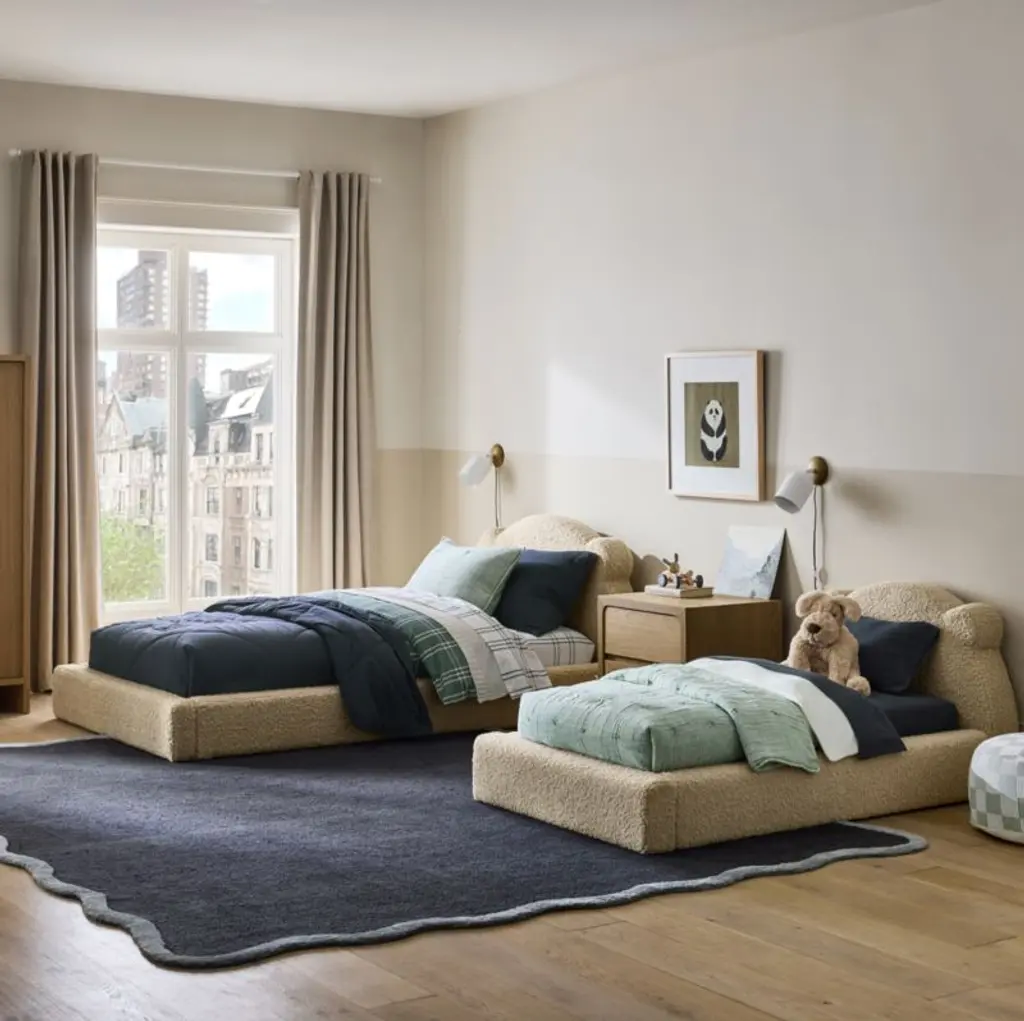 Our Pixi kids' sconce puts a playful spotlight on modern design. Futuristic and fun, this plug-in wall light washes walls with ambient light. Its posable metal head looks side to side to point the light where you need it most, and it's finished in decor-friendly matte white to complement the wood back plate. Ours exclusively, this colorful accent light transitions from nursery to big-kid's room to shared family spaces throughout the home.