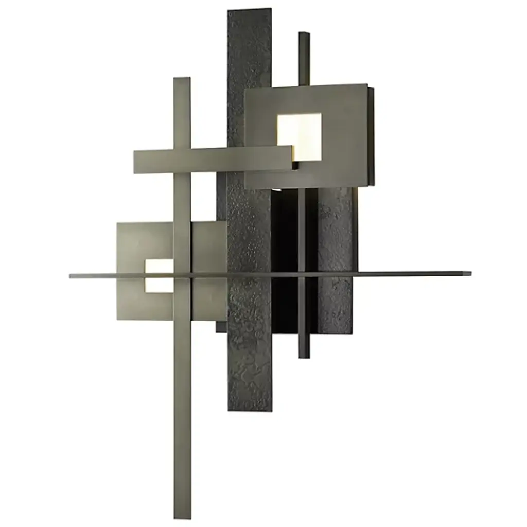 Inspired by Frank Loyd Wright's Fallingwater home, the Hubbardton Forge Planar LED Wall Sconce was specifically designed to utilize Hubbardton Forge's transitional arts and craft aesthetic in conjunction with new designs that are possible with the use of LEDs. Planes of steel come to life when illuminated, being both textured and smooth on the surface.