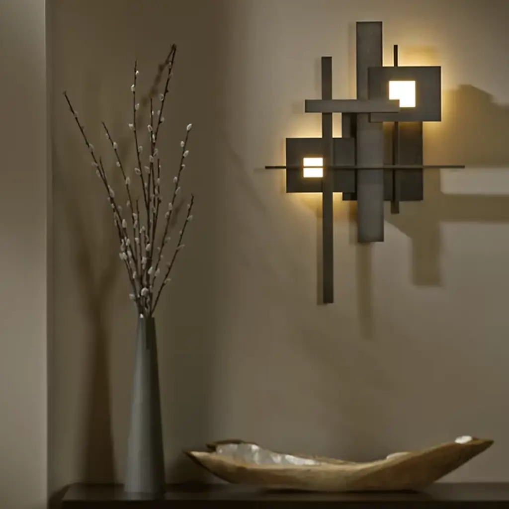 Inspired by Frank Loyd Wright's Fallingwater home, the Hubbardton Forge Planar LED Wall Sconce was specifically designed to utilize Hubbardton Forge's transitional arts and craft aesthetic in conjunction with new designs that are possible with the use of LEDs. Planes of steel come to life when illuminated, being both textured and smooth on the surface.