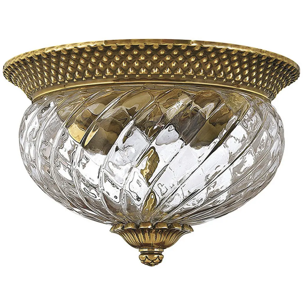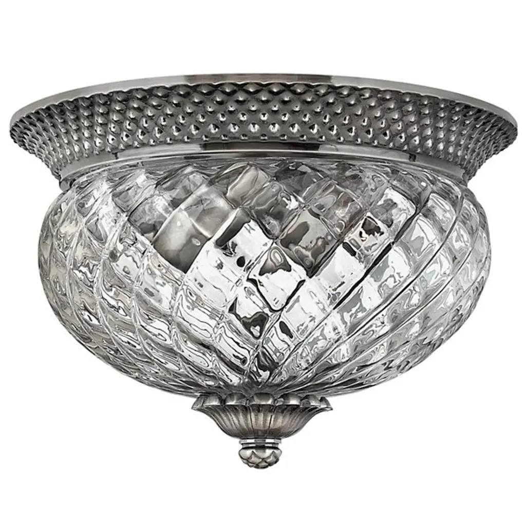 A tropical beauty, filled with transitional appeal and a refreshingly unique profile. The Hinkley Lighting Plantation Flushmount features a beautiful handblown glass shade with delightfully detailed trim and accents. An excellent complement to the rest of the Hinkley Plantation lighting collection, especially the pineapple-themed pendants and sconces.