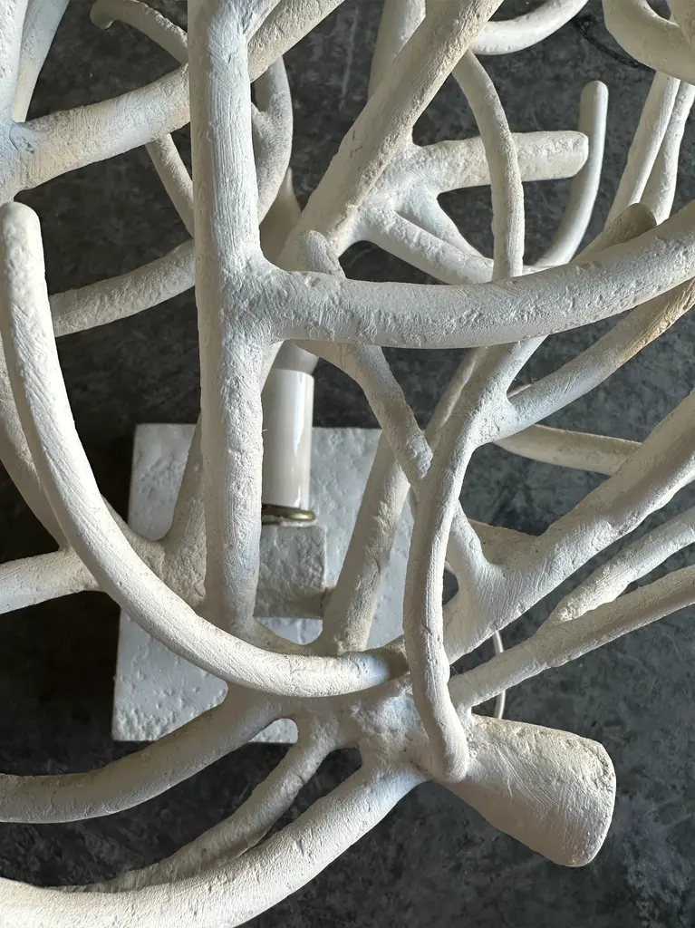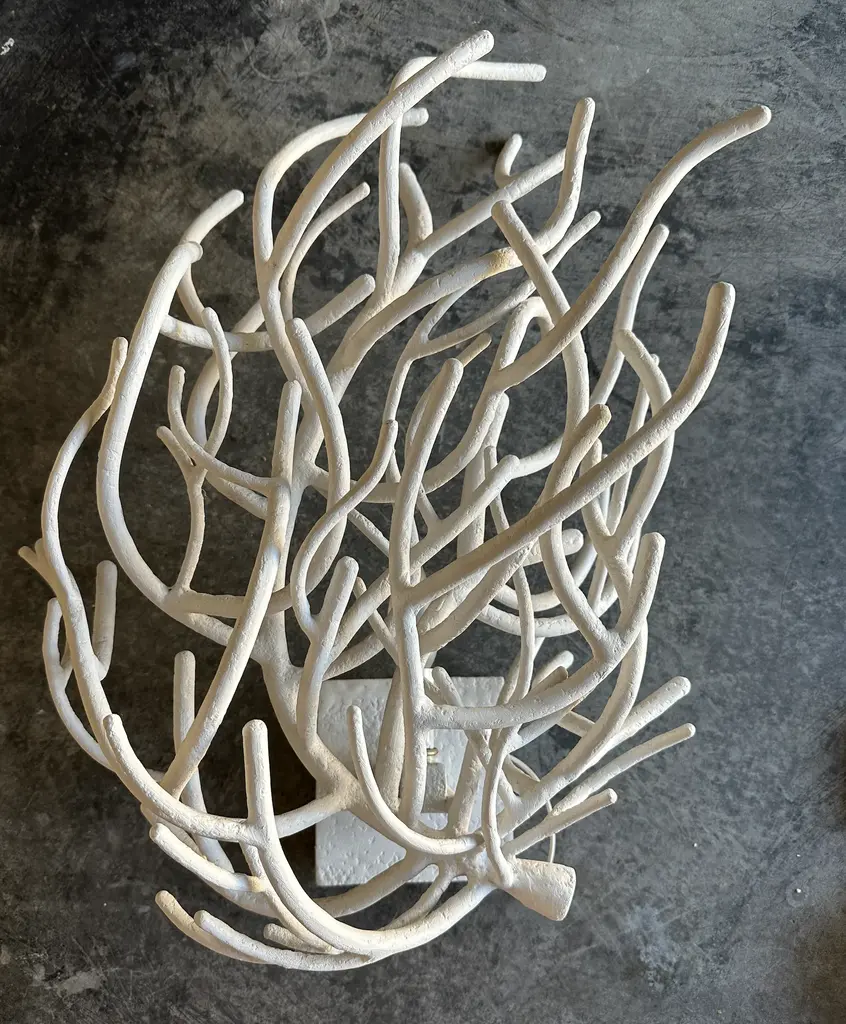 Sconce made of hand applied plaster over powder coated metal branches looking like coral. Exquisite plaster finish. Very good vintage condition. Lights uses one candelabra based bulb. Max wattage is 60 per light. 21.5 x 14.5W x 10"D Maker: Moth Design This sconce is sold separately but is part of a pair. The mate sconce is available for purchase if a pair is desired.
