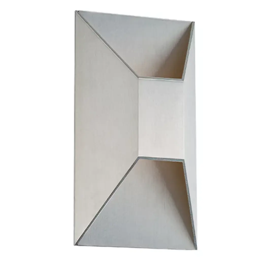 The Plateau LED Outdoor Wall Sconce from Huxe shows off beveled sides and a straightforward, contemporary design with an angular, minimalist edge. Developed with an emphasis on clean geometry, its aluminum frame forms a faceted hood around an etched glass diffuser. This pairing creates a compelling play of bidirectional light, offering both upward and downward illumination along its mounting surface. The fixture is Damp-rated and ADA-compliant, featuring a switch that allows easy selection between 3000K and 4000K color temperatures. It can be mounted vertically or horizontally and delivers a wall wash in the desired direction.
