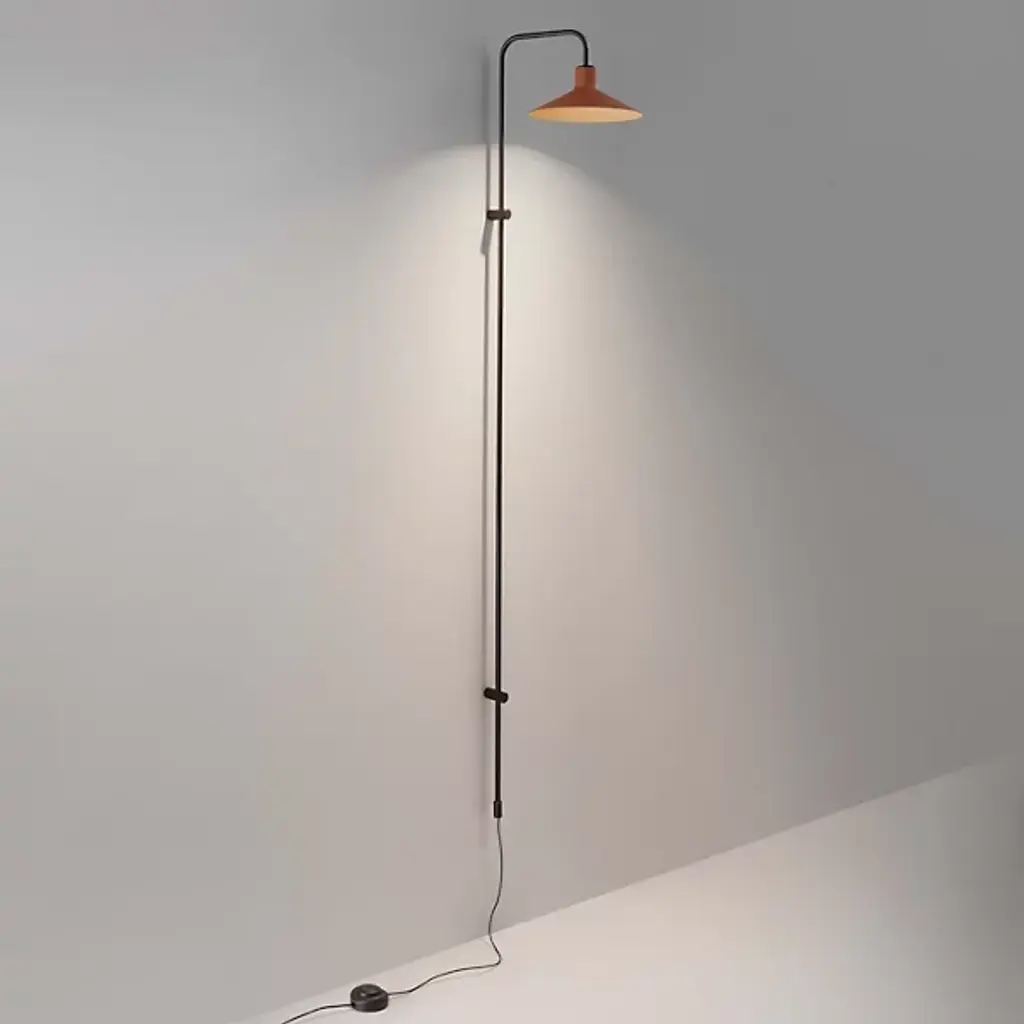 The Platet LED Cone Wall Sconce by Bover has a minimal, modern look that brings the timeless build of the typical, industrial-style lamps with visible bulbs and protective, transparent glass shades into the home. Designed by Christophe Mathieu and inspired by one of his walks around La Escala, this piece supports a flared shade with a slender, gracefully curved stem that runs along the wall and is anchored at two points. Pairing simple, familiar shapes and the need for a balanced blend of form and function together, this wall sconce is a handsome, practical addition to spaces.