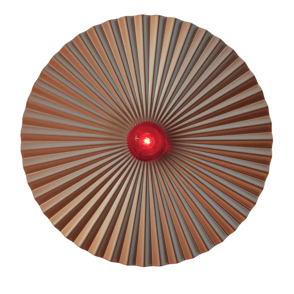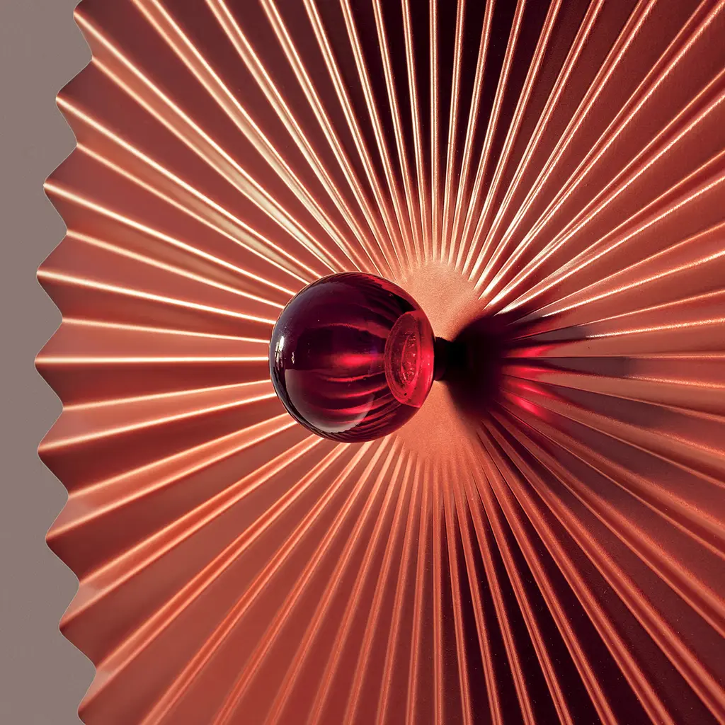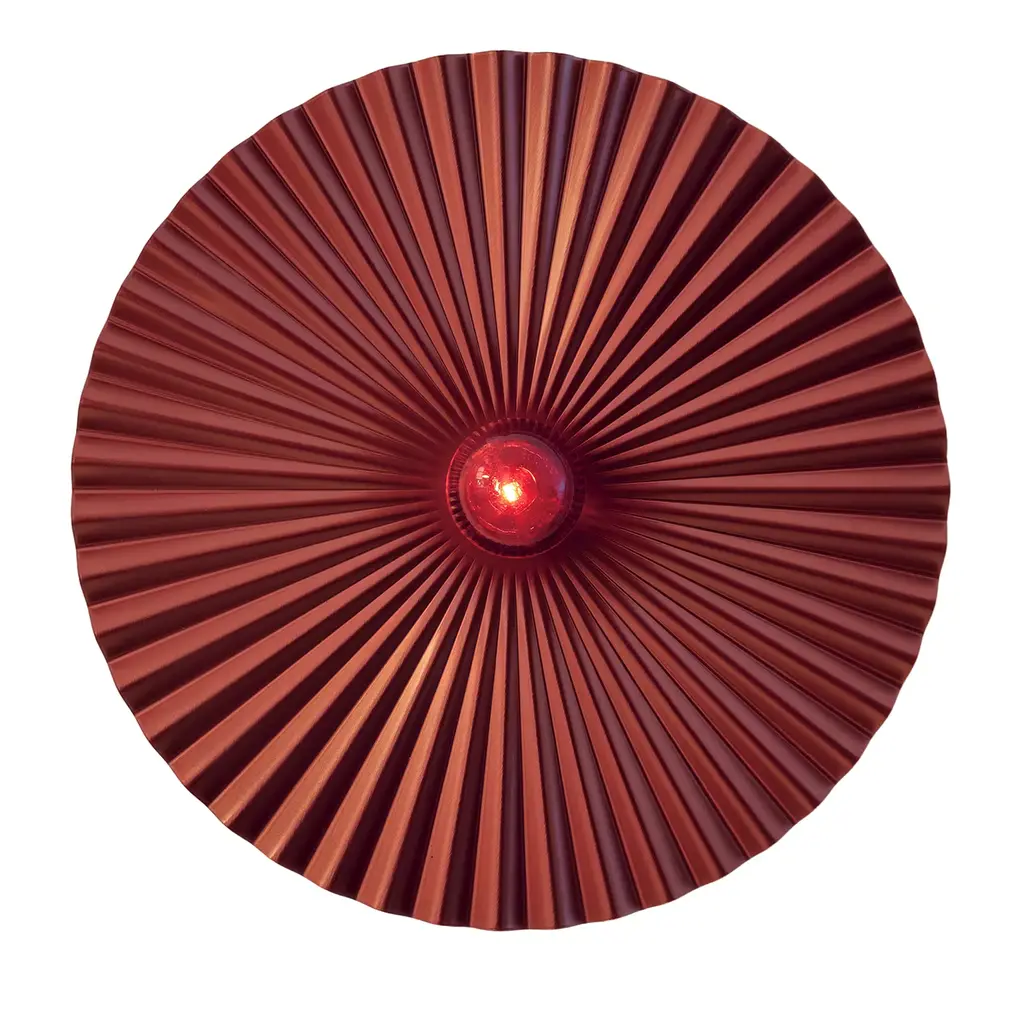 Light and slender, this sconce belongs to a refined series of lighting fixtures designed by Daniela Puppa, inspired by the pleats of a ballerina's tutu. Emitting a soft, indirect light, it is handmade of red-lacquered anodized aluminum. It is also available in a 60cm format, please contact the Concierge for further details.