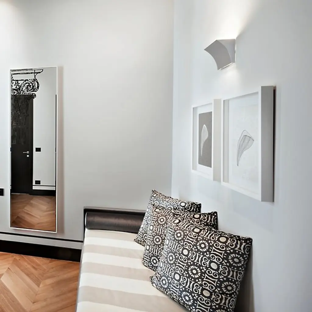 Crafted by Rodolfo Dordoni, the Pochette Wall Sconce from FLOS is an indoor LED wall sconce that offers both upward and downward lighting, ensuring a harmonious blend of indirect and direct light for residential or commercial spaces. Constructed from pressure die-cast Zamak alloy, the molded steel back plate, galvanized in white, houses the wall attachment system and electrical devices. Inspired by minimalism, Dordoni's design maximizes efficiency by using less material while delivering timeless elegance.