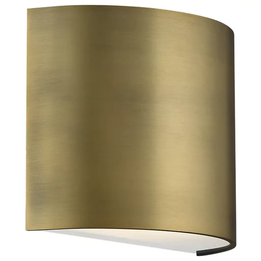 A beautifully understated fixture from dweLED the Pocket 7" Wall Sconce provides a soft glow that’s easy on the eyes. Ideal for modern, minimalist, and even traditional interiors, this versatile light can be configured to provide either uplighting or downlighting for the ultimate in versatility. Featuring a half cylinder outer shade in metallics like aged brass and brushed nickel, the Pocket Wall Sconce emits 3000K light through its opaque white glass diffuser.