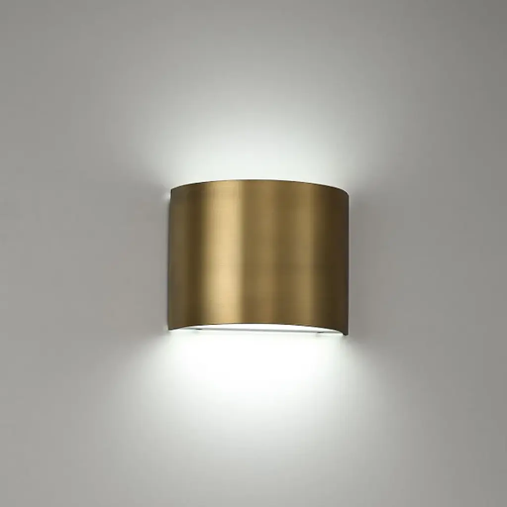 A beautifully understated fixture from dweLED the Pocket 7" Wall Sconce provides a soft glow that’s easy on the eyes. Ideal for modern, minimalist, and even traditional interiors, this versatile light can be configured to provide either uplighting or downlighting for the ultimate in versatility. Featuring a half cylinder outer shade in metallics like aged brass and brushed nickel, the Pocket Wall Sconce emits 3000K light through its opaque white glass diffuser.