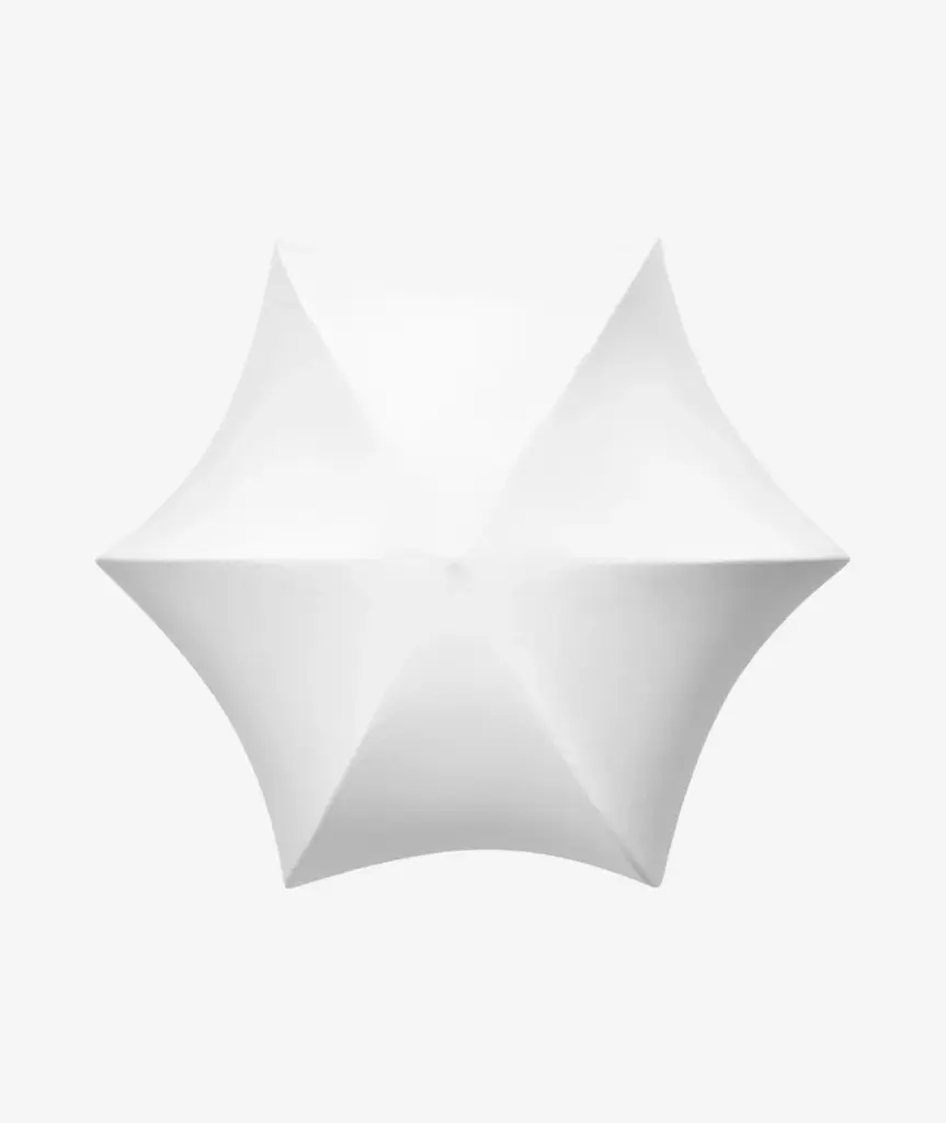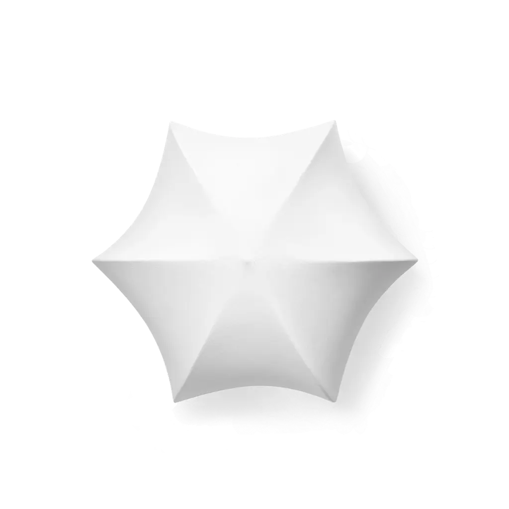 Drawing inspiration from the opulent details found in Baroque art and architecture, the Poem Wall/Ceiling Lamp has a romantic and elegant expression. Made through an intricate process where liquid tissue is sprayed over the lamp's inner steel structure, the result is a translucent shade that artfully stretches over intricate arches, ensuring that the lamp emits a soft, diffused light while resembling a delicate flower. The non-woven polymer shade will beautifully patinate over time, giving it a unique appearance. Hang the Poem lamp on a wall or use it as a plafond-style ceiling lamp that will elevate and illuminate any space. Designed and produced by the Copenhagen-based studio Ferm Living.