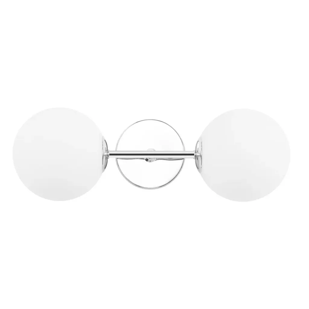 A perfect balance of proportions, this double sconce sets frosted glass globes against antique brass arms and backplates. It’s a sophisticated element for modern settings and can be horizontally or vertically mounted. Damp-rated, although limited covered outdoor conditions may affect the finish.