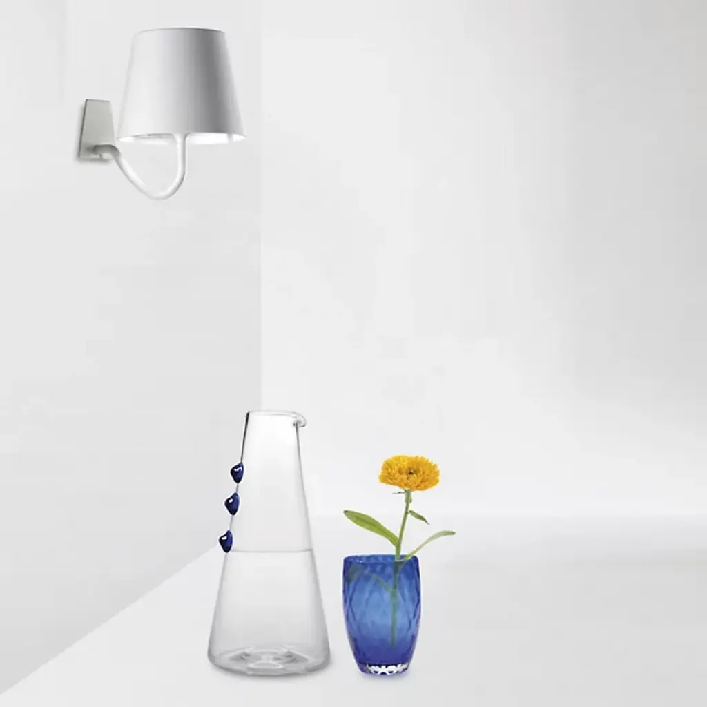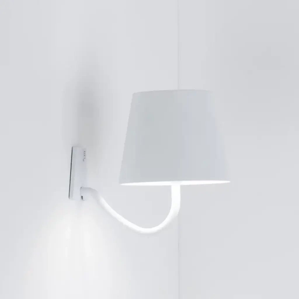 Add a curving contemporary touch to your walls and halls with the Poldina LED Magnetic Rechargeable Wall Sconce from Zafferano America. The sconce’s flat wall mount widens from top to bottom, holding out a slim aluminum stem from its lower edge that curves up to hold bright, energy-efficient LED lamping under a flared, smooth-sided shade. The lamping is rated for 9+ hours of use, and is rechargeable on a contact charging base (with its magnetic head), with any excess brightness further moderated by a polycarbonate disc diffuser.