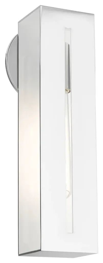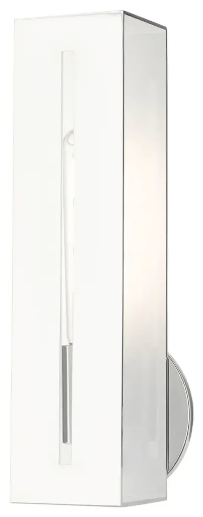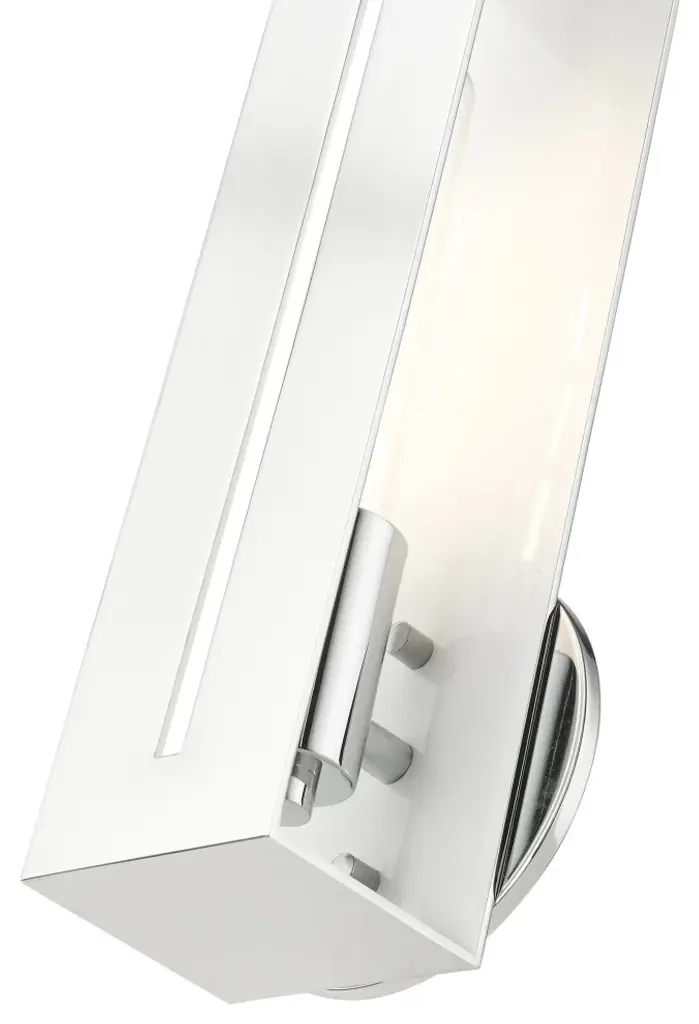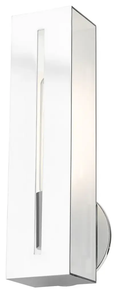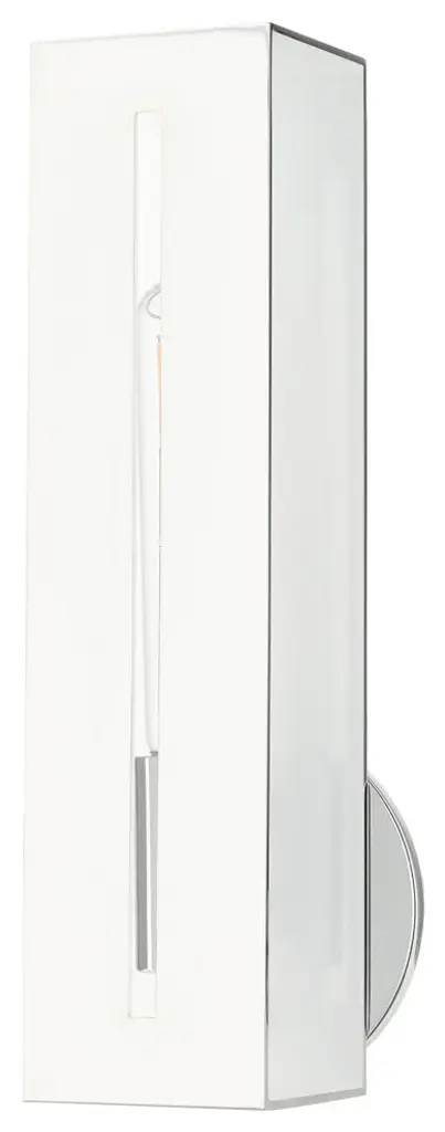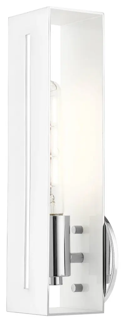 Inspired by the modern skyscraper design, the architectural lines of the Soma collection are truly suitable for urban and contemporary environments such as an industrial loft. The exposed bulbs make a beautiful accompaniment to the distinctive contrasting finishes of this rectilinear piece. This contemporary two light vanity sconce comes in a polished chrome finish with a shiny white inside. It fits perfectly in a minimalistic modern bathroom, hallway or bedroom.Bulb Type: Medium BaseNumber of Bulbs: 1Bulbs Included?: NoUL Listed: ULBulb Wattage: 60Hardwire or Plug: Hardwire