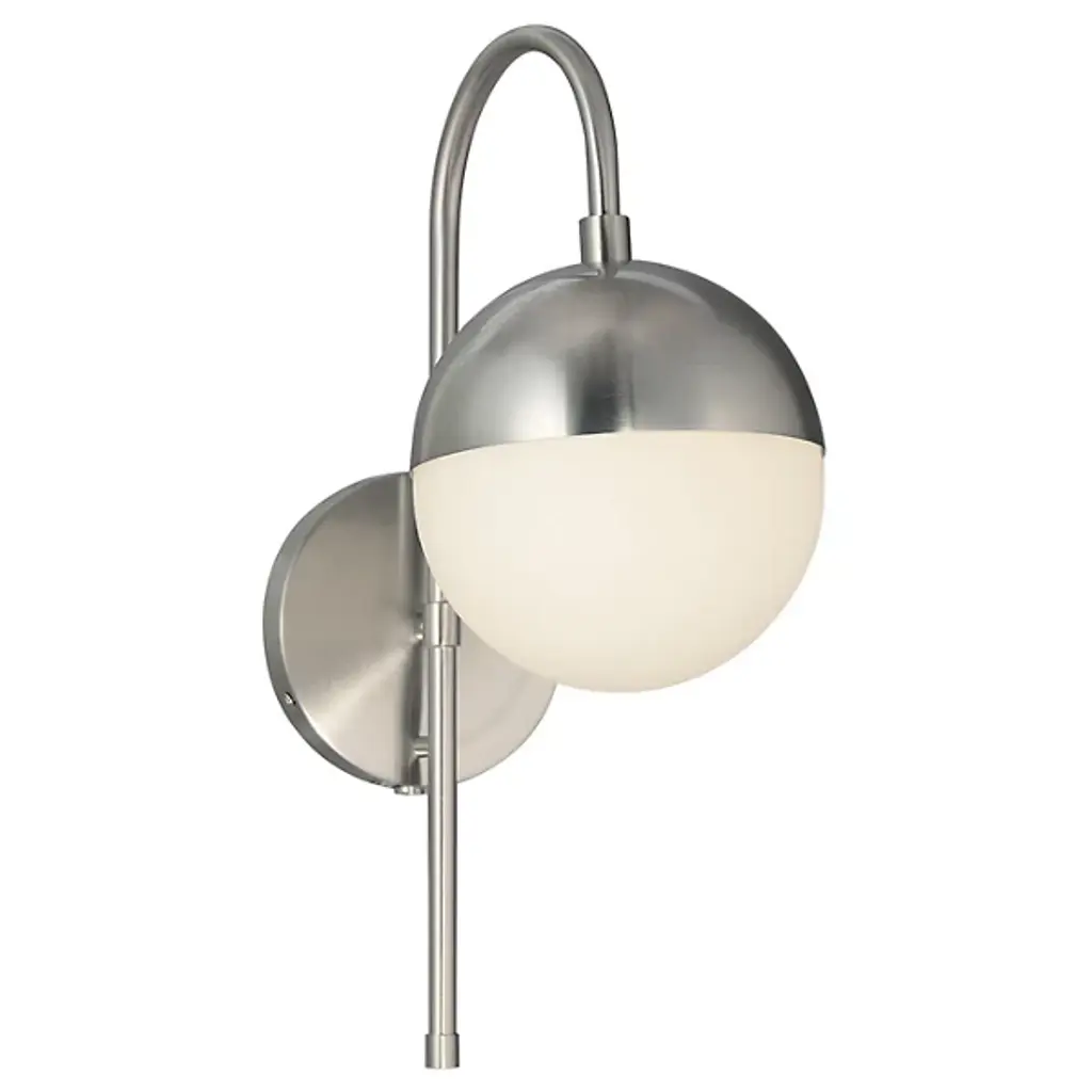 Opal big bulb wall lamp by CTO LightingMaterials: polished nickel with opal glass shadeDimensions: 20 x H 36 cmAll our lamps can be wired according to each country. If sold to the USA it will be wired for the USA for instance.Also available in brass.1 x G9, 25w max halogen (or 2.3w LED 2700k)weight 2kg (4.4lbs)no bulbs suppliedmounts onto 4” junction boxFounded in 1998 by Chris and Clare Turner, CTO Lighting launched their first collection on the guiding principles of designing lights of uncompromising quality, using only the finest materials and working with elite British craftsmen. This collection of lighting symbolized elegance and the excellence of British design and manufacturing; the benchmark for all future collections.