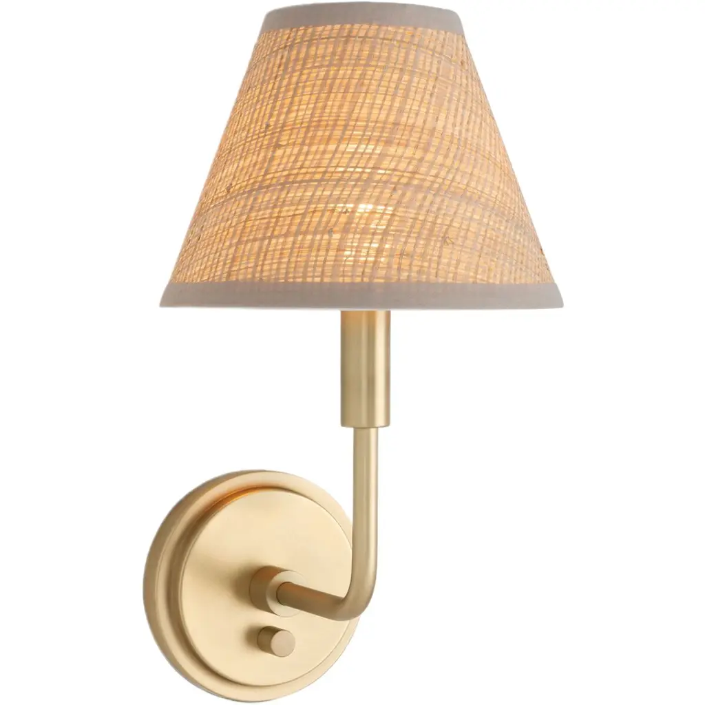 The Polly Wall Sconce embodies refined elegance with its single rattan shade, which allows light to shine through its woven texture, casting a warm and inviting glow. The gently curved arm enhances its classic charm, enabling the sconce to blend seamlessly with both modern and traditional styles. Ideal for any space, it offers graceful and stylish illumination, creating a welcoming atmosphere wherever it is placed.