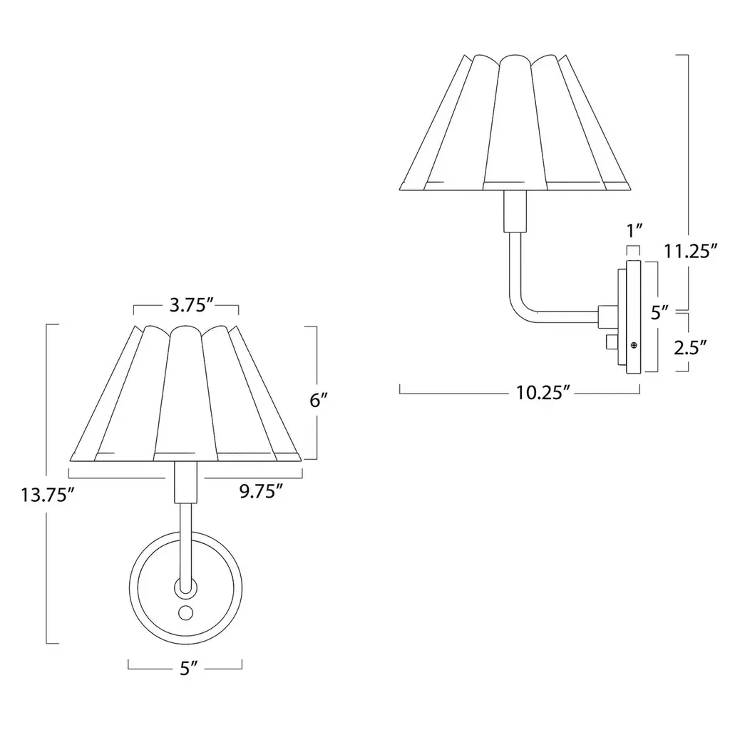 The Polly Wall Sconce brings an air of refined elegance with its single scalloped shade, casting a warm and comforting glow on any wall. The gently curved arm adds a touch of classic sophistication, blending seamlessly with both modern and traditional styles to enhance any space with grace and style.