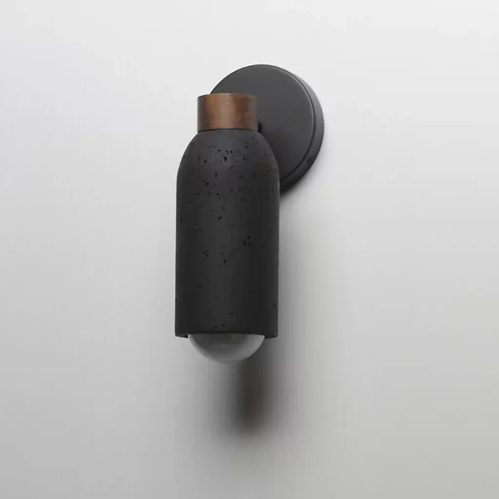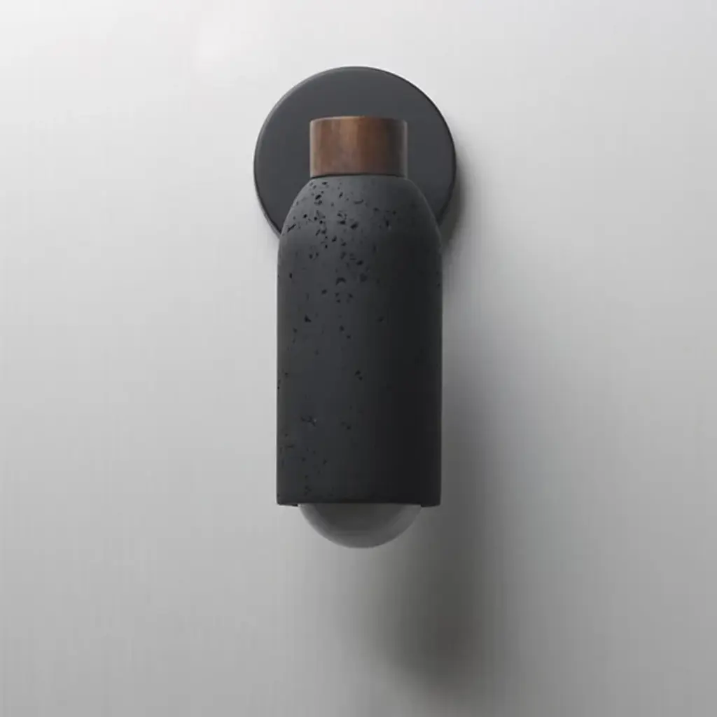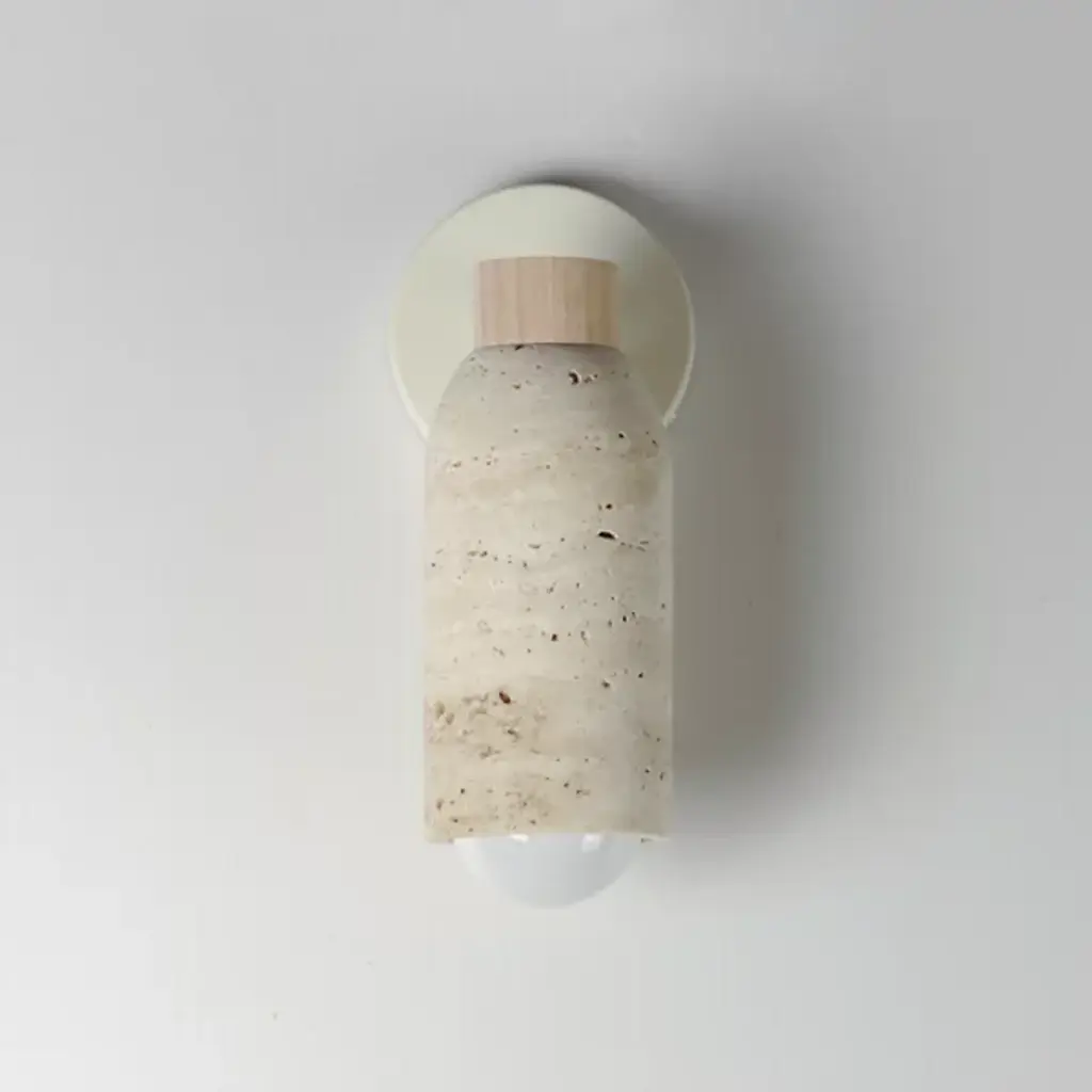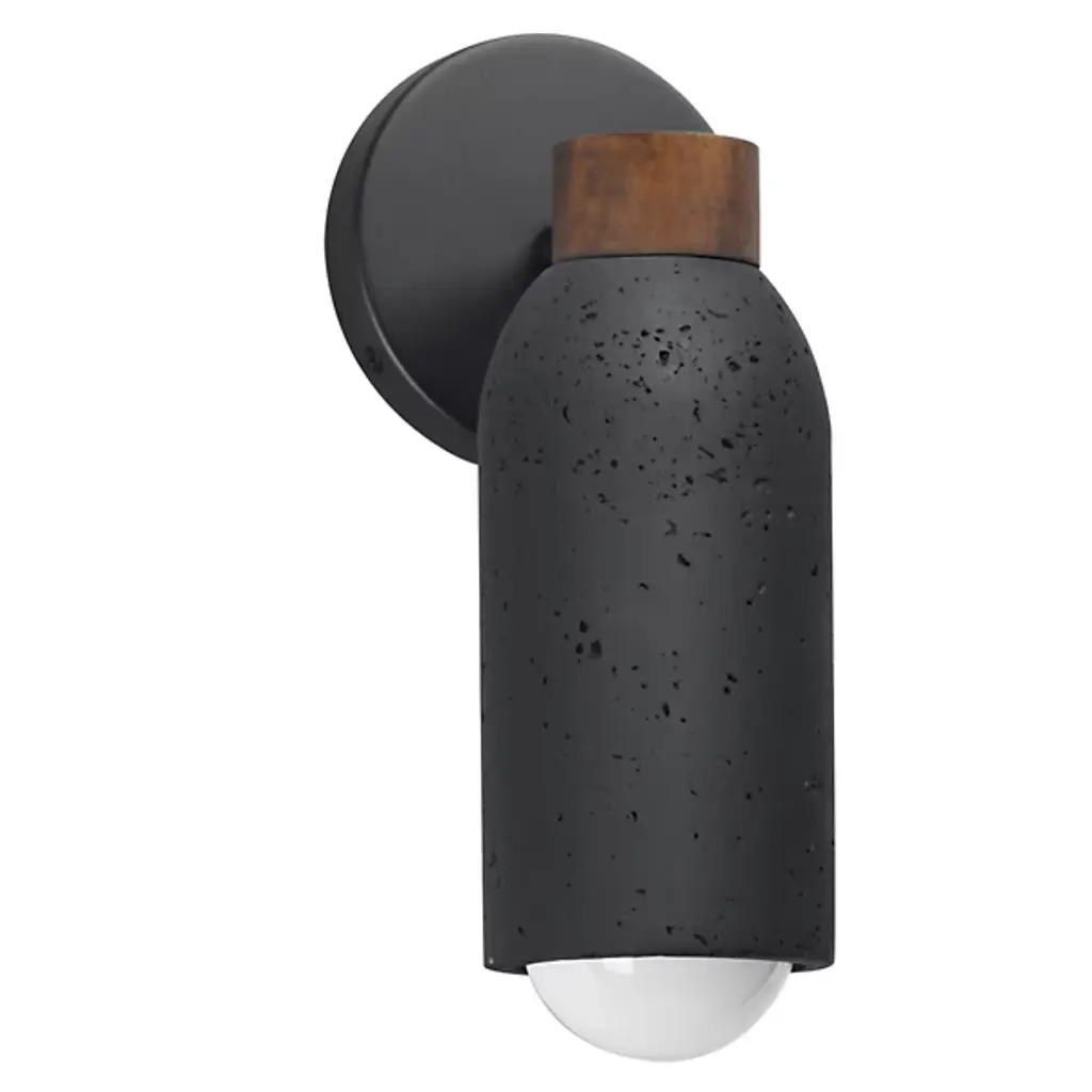 The Pompeii Wall Sconce from Maxim Lighting brings earthy charm and sculptural character to transitional spaces. Each fixture is mounted on a simple disc wall plate; this design features a cylindrical shade made from your choice of carved Travertine or volcanic Lava Rock. Each natural stone option is paired with lathed wood and coordinating metal accents—White Oak and Ecru white for Travertine or Walnut and matte black for Lava Rock. The simple shape is rich in texture and full of character, celebrating the beauty found in natural imperfections.