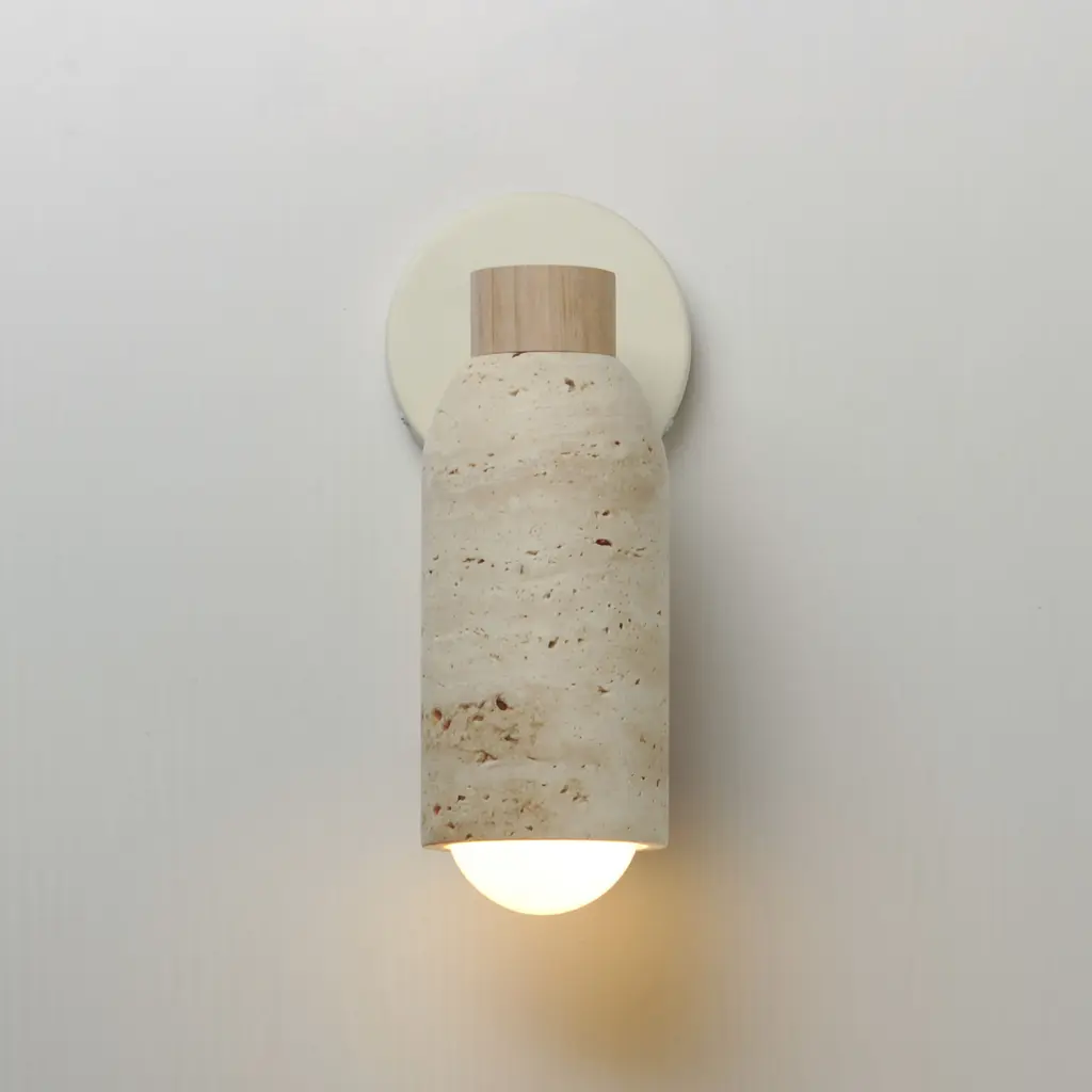 A tribute of natural materials, this collection features carved stone shades in your choice of Travertine or volcanic Lava Rock, paired with coordinating lathed wood bases. The Travertine composition showcases White Oak wood and Ecru white metal accents, while the blackened Lava Rock is beautifully complemented by Walnut wood and a Matte Black finish. Available in versatile pendant and wall sconce configurations, each piece highlights the organic beauty and timeless sophistication of its materials.