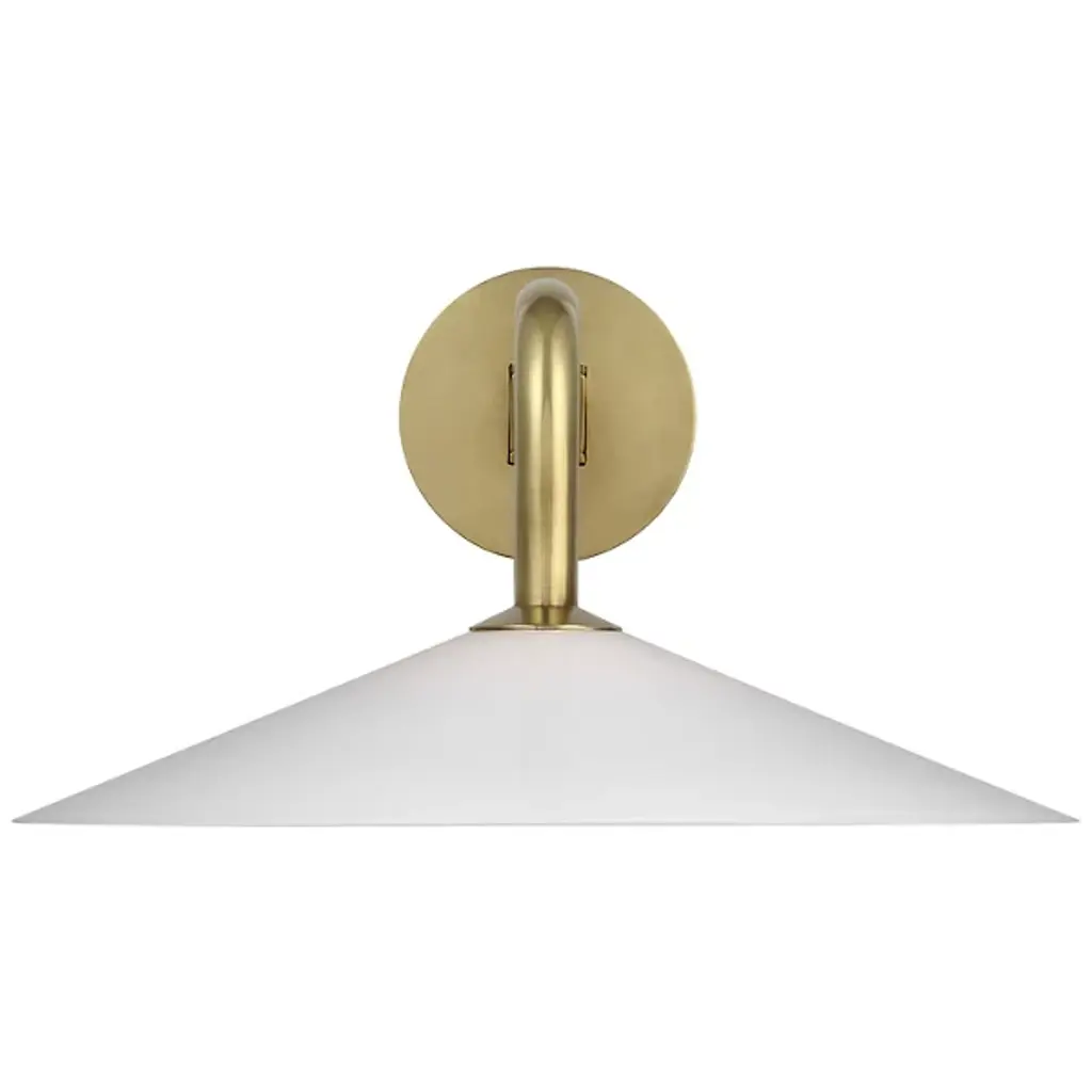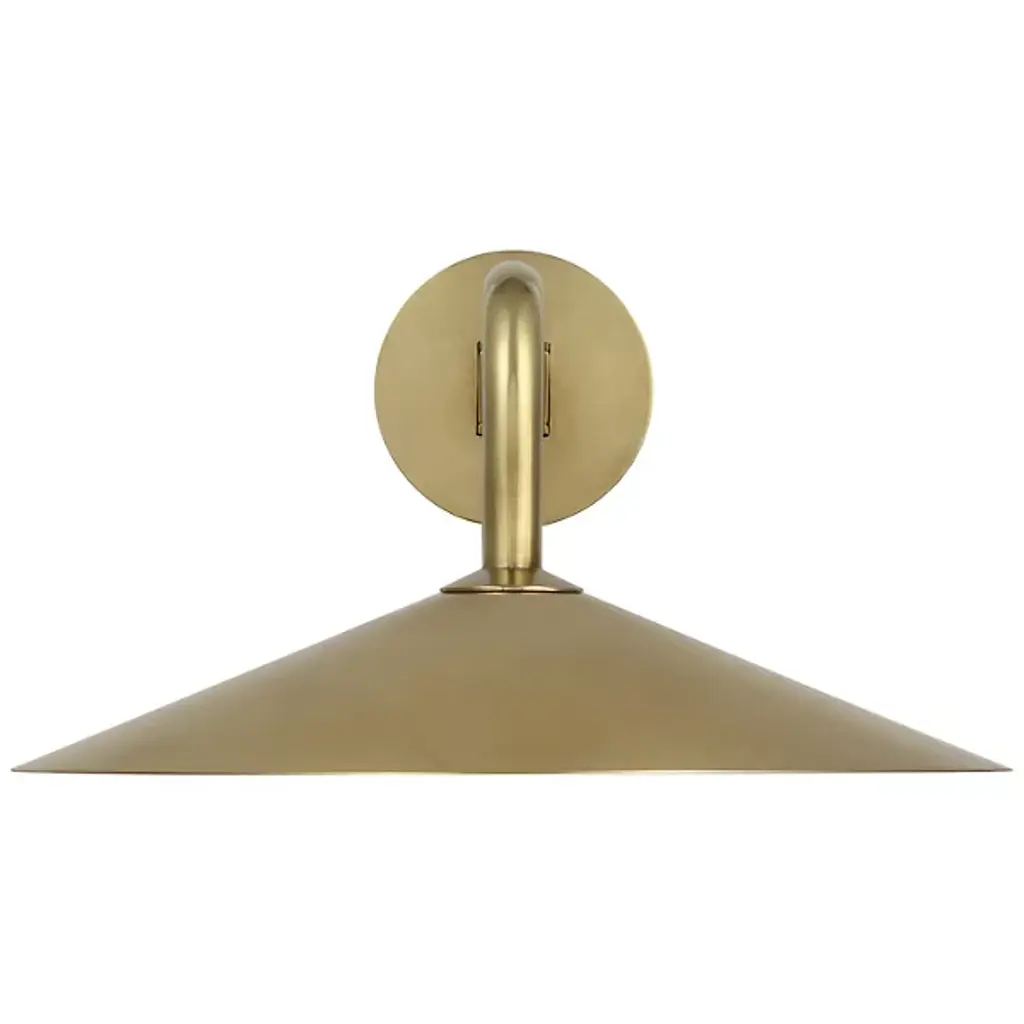 The Ponce Articulating LED Wall Sconce from Visual Comfort Signature pivots, allowing light to be directed exactly where needed. The jointed arm extends from the circular backplate, positioning the conical shade at the perfect angle for reading or task lighting. Amber Lewis infuses this functional design with architectural purity through clean lines and honest brass construction. Unlike fixed sconces, this adaptable fixture provides personalized lighting control that can change with your needs. The minimal arm appears impossibly thin yet maintains structural integrity while supporting the shallow cone shade that directs illumination with precision.