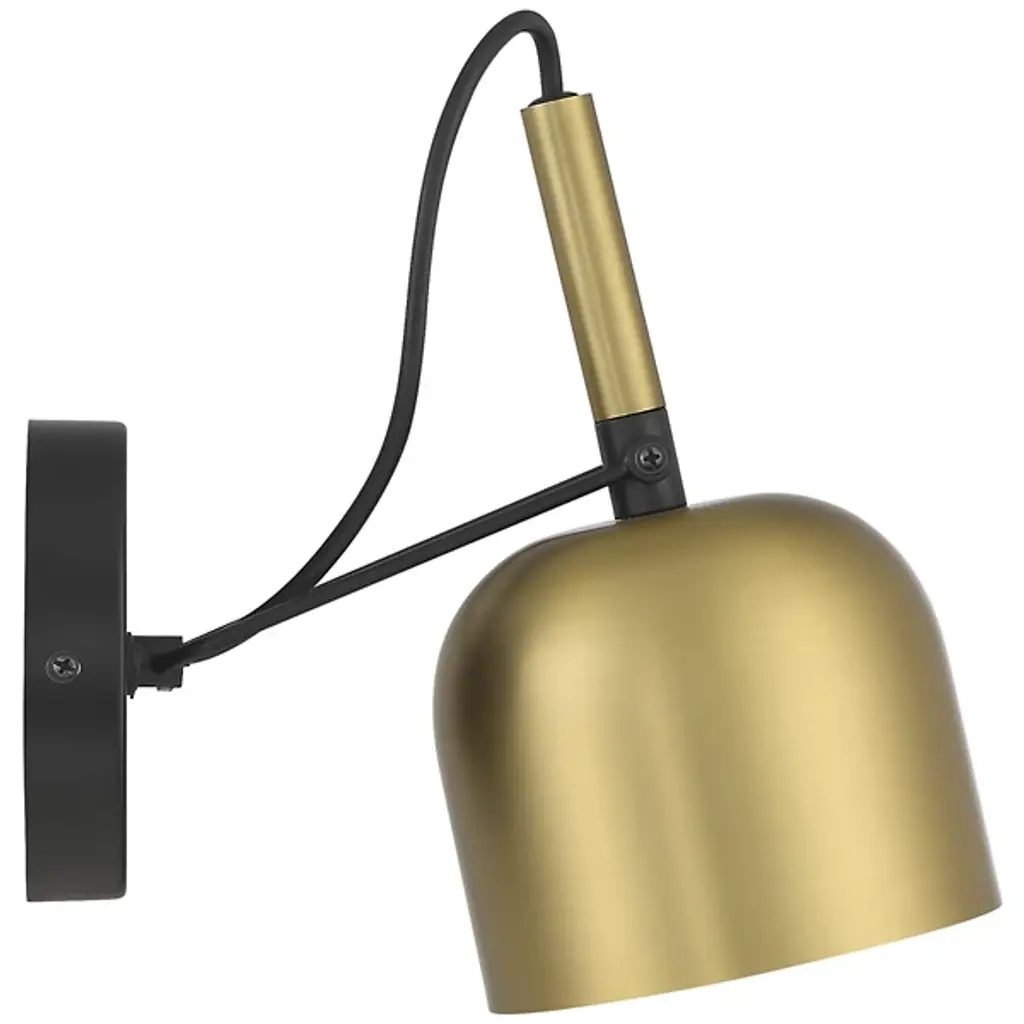 Modern lighting inspired by the mid-century modern designs of Gio Ponti. The Ponti LED Reading Wall Sconce by Access Lighting has appropriately clean lines punctuated by similarly clean curves. It has a bell-shaped steel shade supported by a unique 2-bar arm. The arm and the give of the loose power cord allow the shade to tilt up or down as needed. This reading light includes an on-off switch on the wall plate and a pin-up kit as an option to hardwire installation.