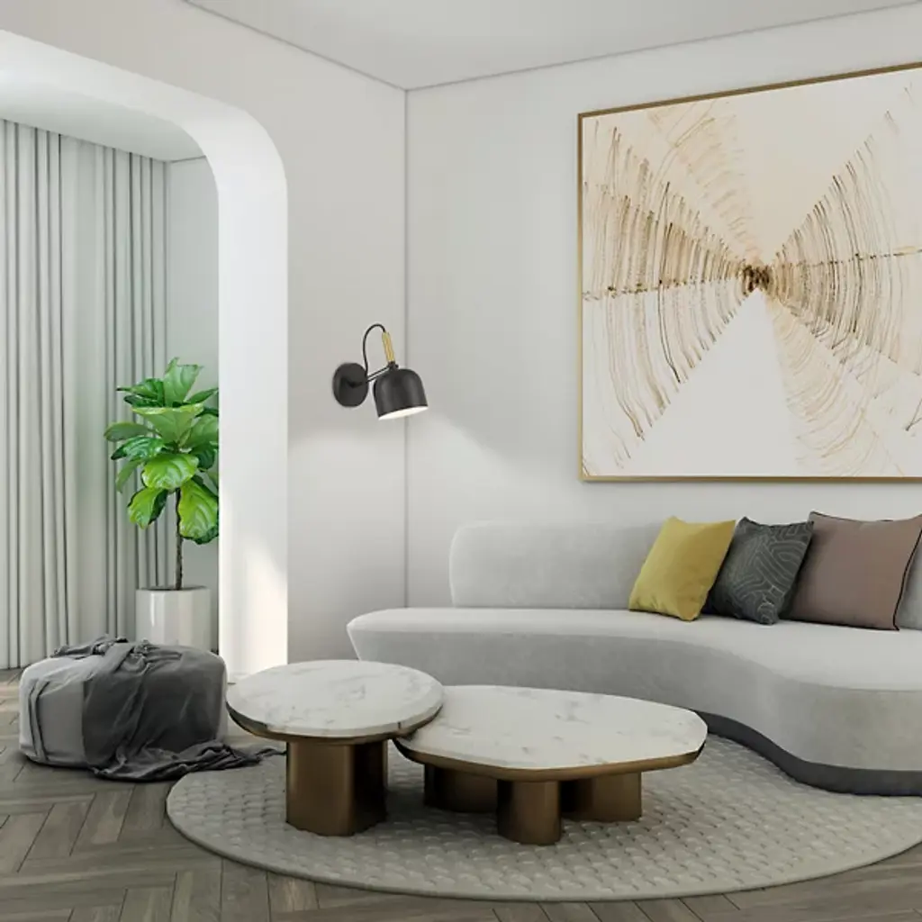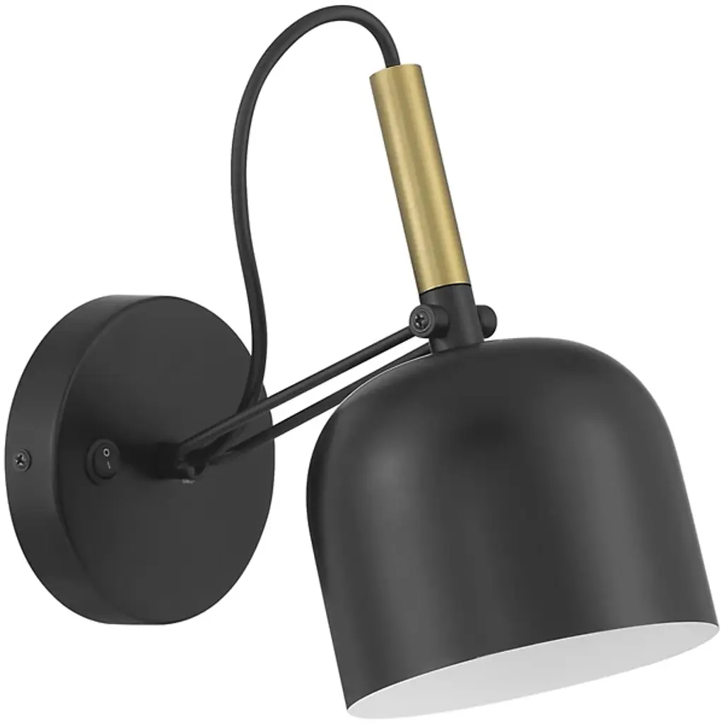 Modern lighting inspired by the mid-century modern designs of Gio Ponti. The Ponti LED Reading Wall Sconce by Access Lighting has appropriately clean lines punctuated by similarly clean curves. It has a bell-shaped steel shade supported by a unique 2-bar arm. The arm and the give of the loose power cord allow the shade to tilt up or down as needed. This reading light includes an on-off switch on the wall plate and a pin-up kit as an option to hardwire installation.
