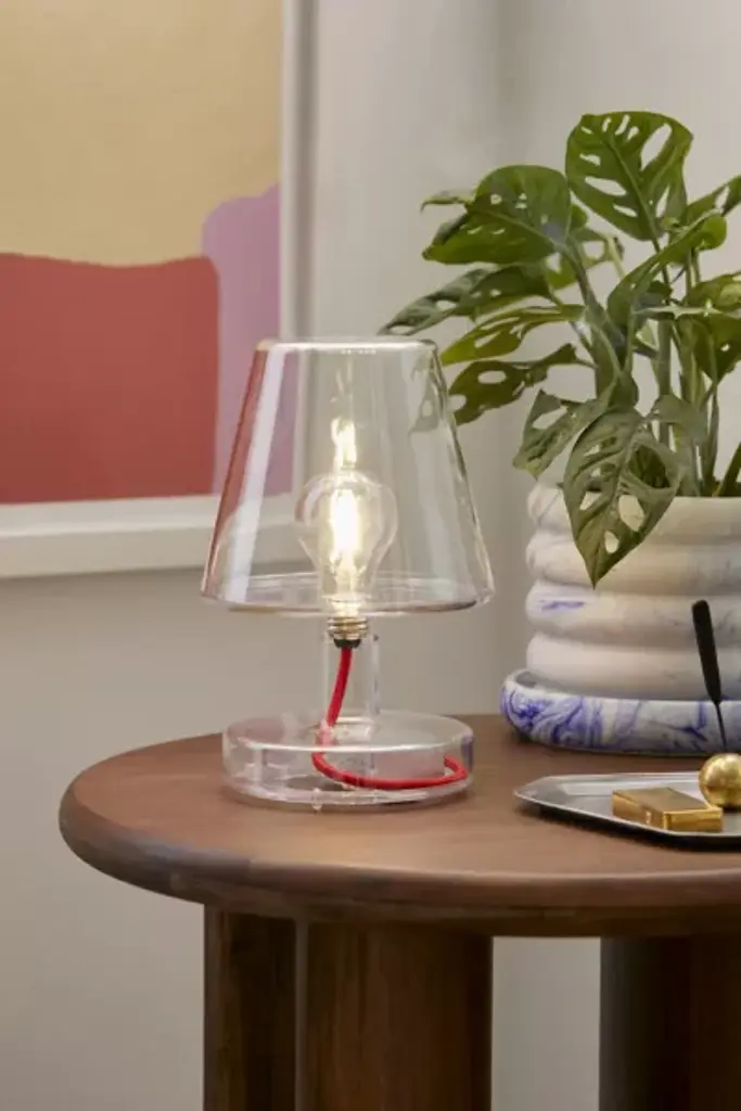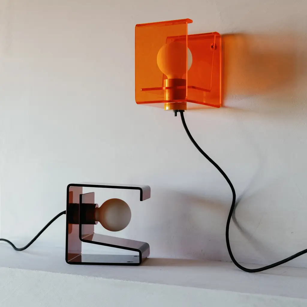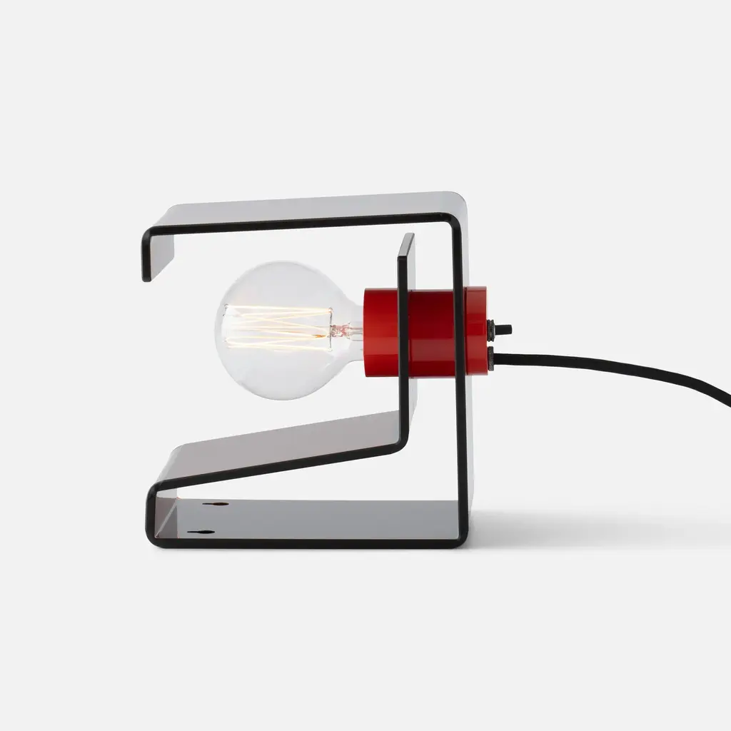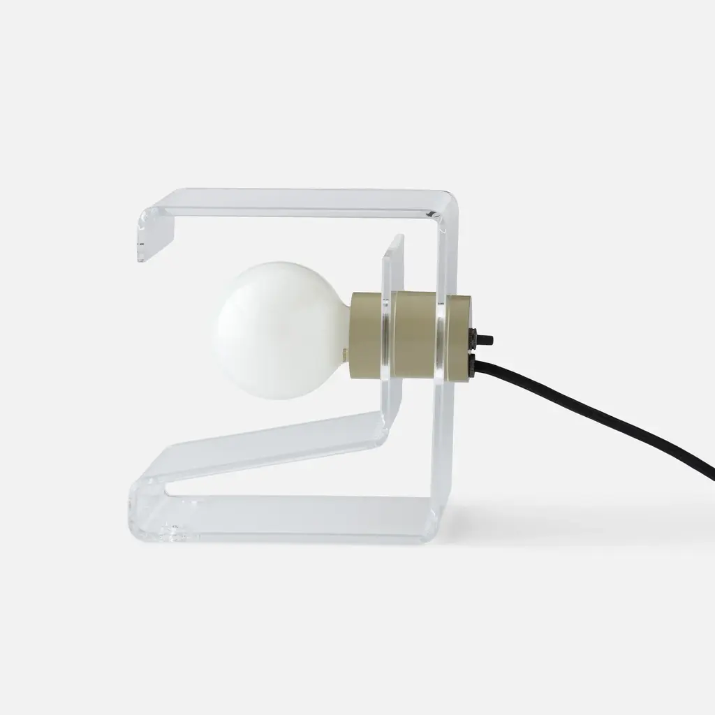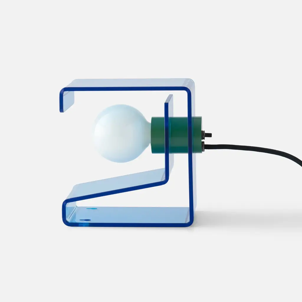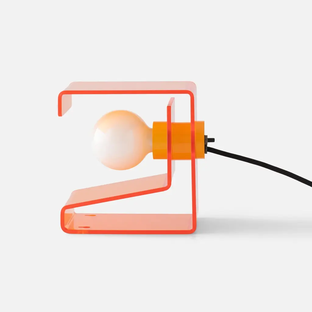Designed to celebrate the materials of its construction, the Pop Light II is a modern redesign of an iconic flea-market find. Crafted from clear acrylic that folds into a cantilevered steeple joined at the center with a painted socket cup, this ever-optimistic light source is designed to make an impact wherever it rests. A welcome presence on a vanity, in a modern office space, or hung from the wall as a bedside reading light. This dual function light source serves as both a plug-in wall sconce or lamp, and pairs beautifully with both frosted and clear bulbs alike. A Schoolhouse Original.