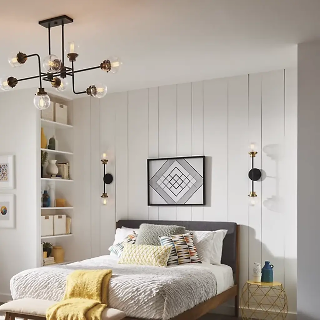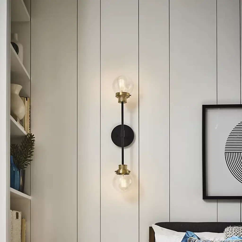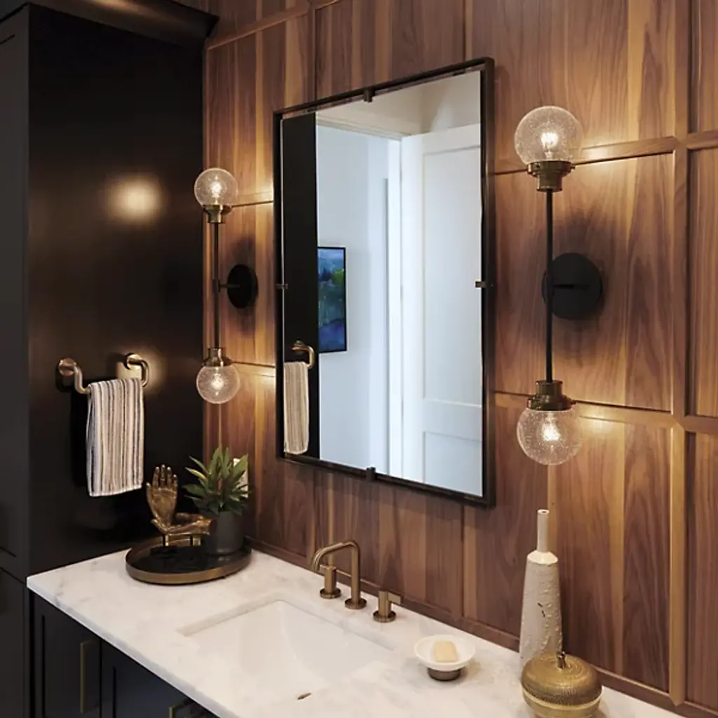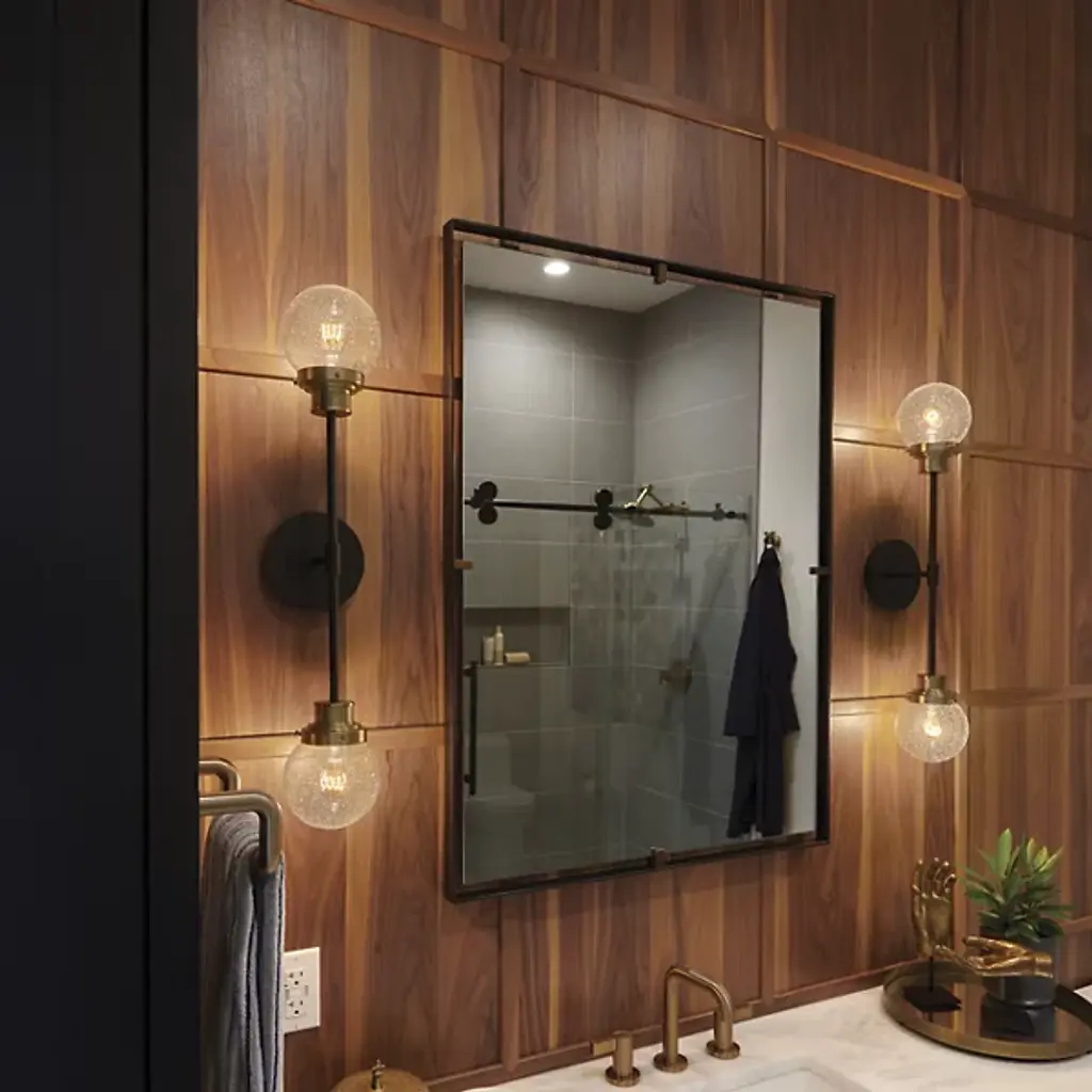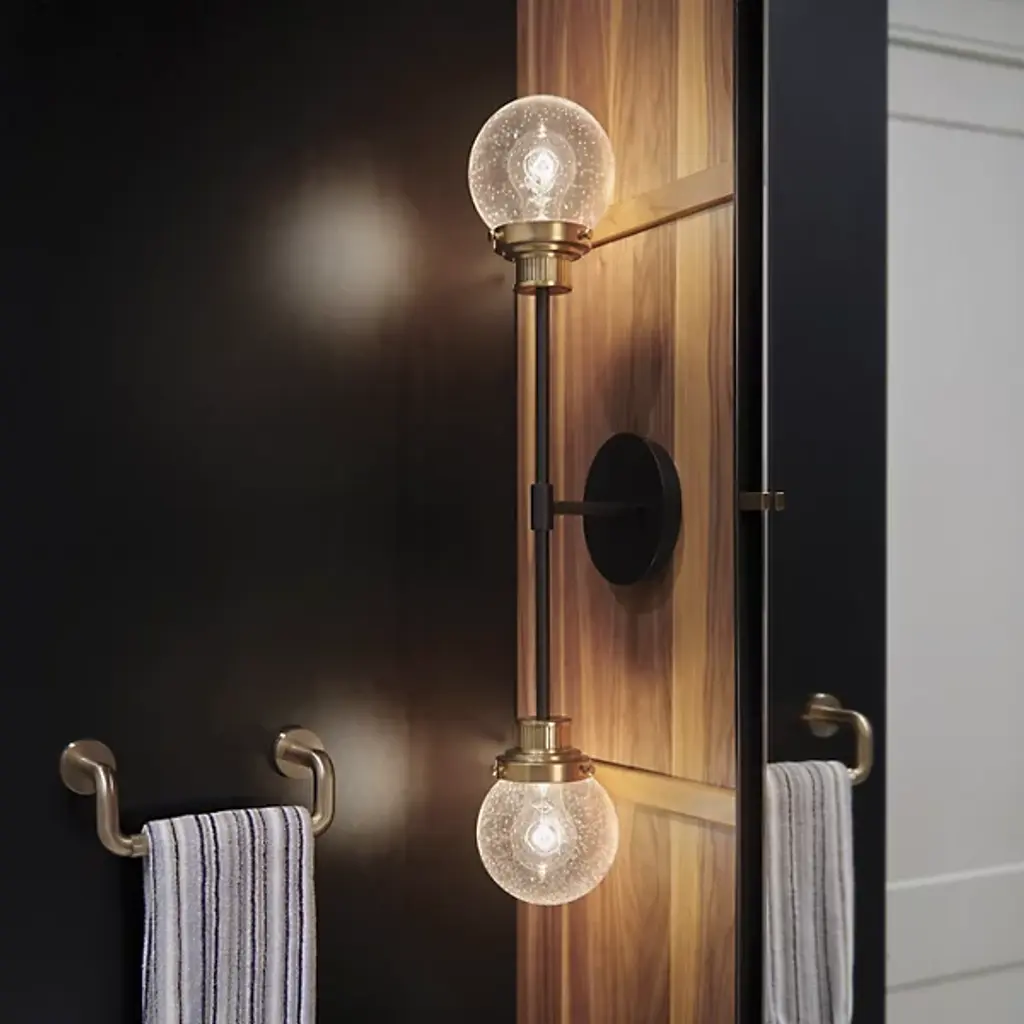 Bring elegant symmetry to your modern home. The Poppy Wall Sconce from Hinkley Lighting is a simple piece with tasteful, eye-catching details. The circular wall mount extends a brief arm that splits upward and downward, each ending with a crisp glass orb shade with a rainy, seeded texture. Each shade contains a single bulb that spreads a bright, inviting glow throughout the space, evenly dispersed thanks to the symmetrical silhouette.