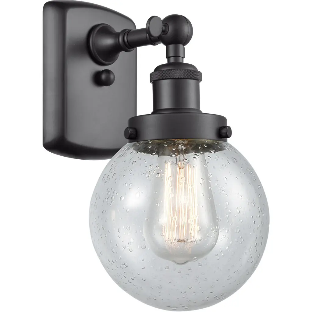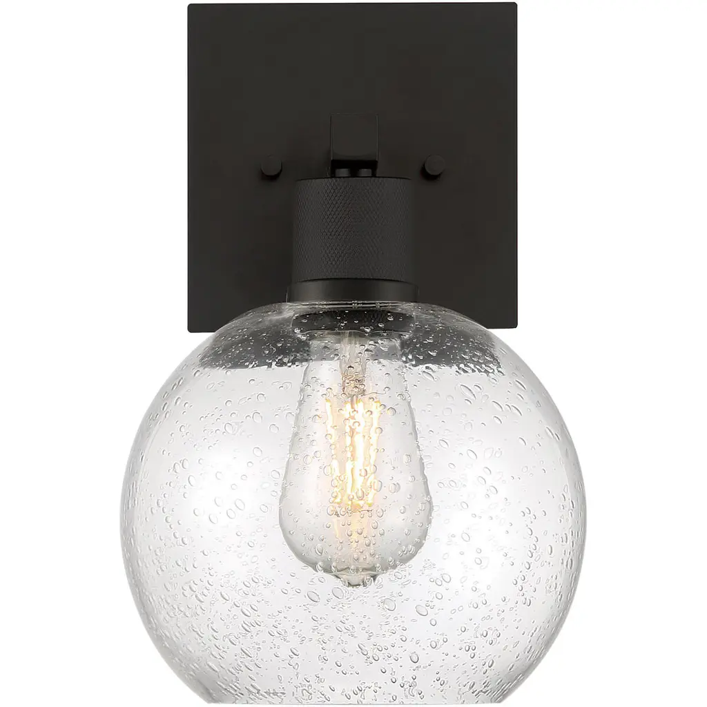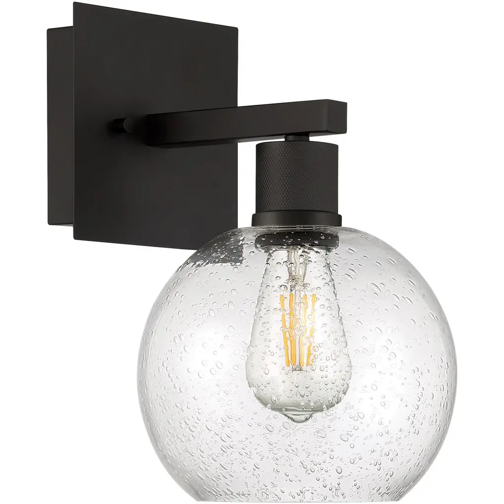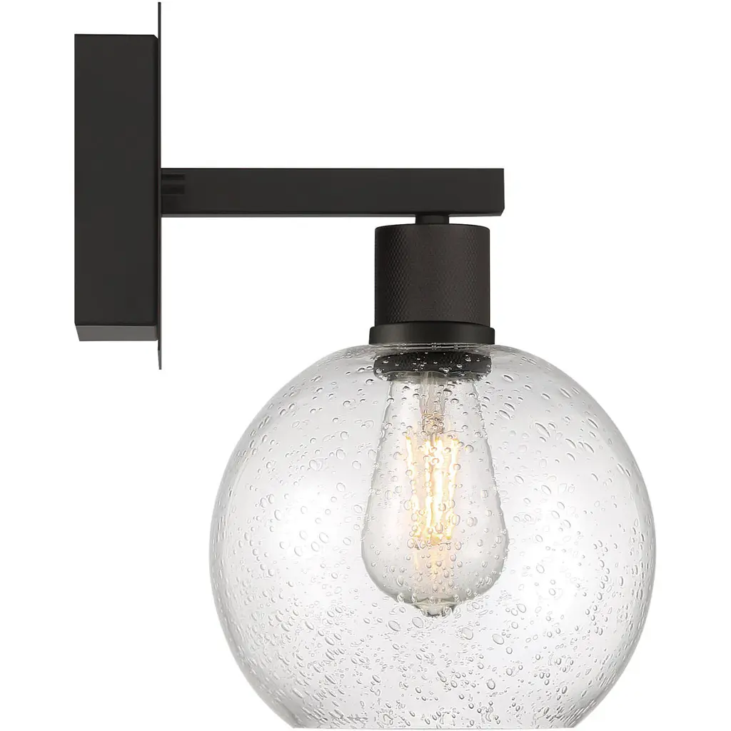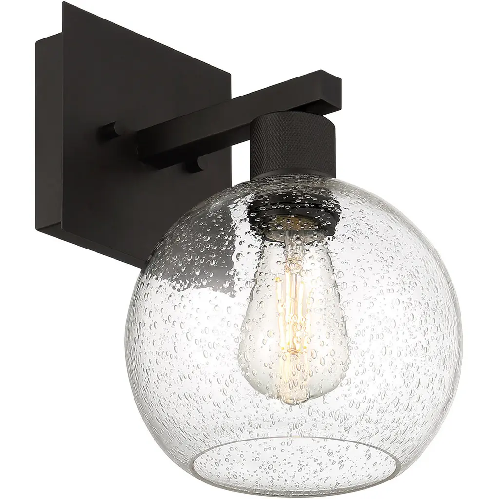 Port Nine Burgundy LED Wall Sconce - Matte Black - Seeded Glass - Replaceable LED