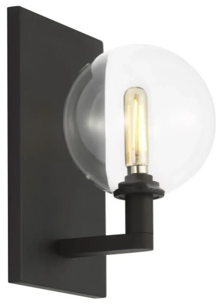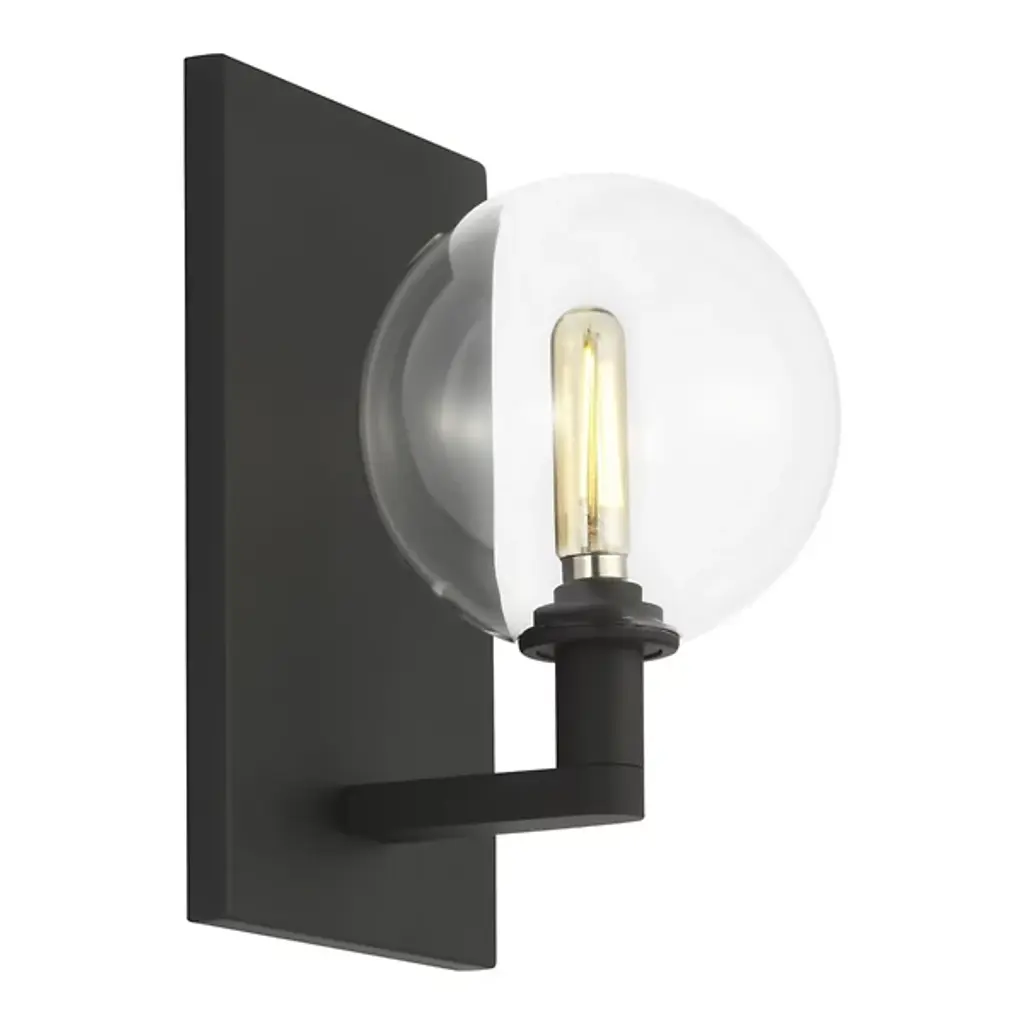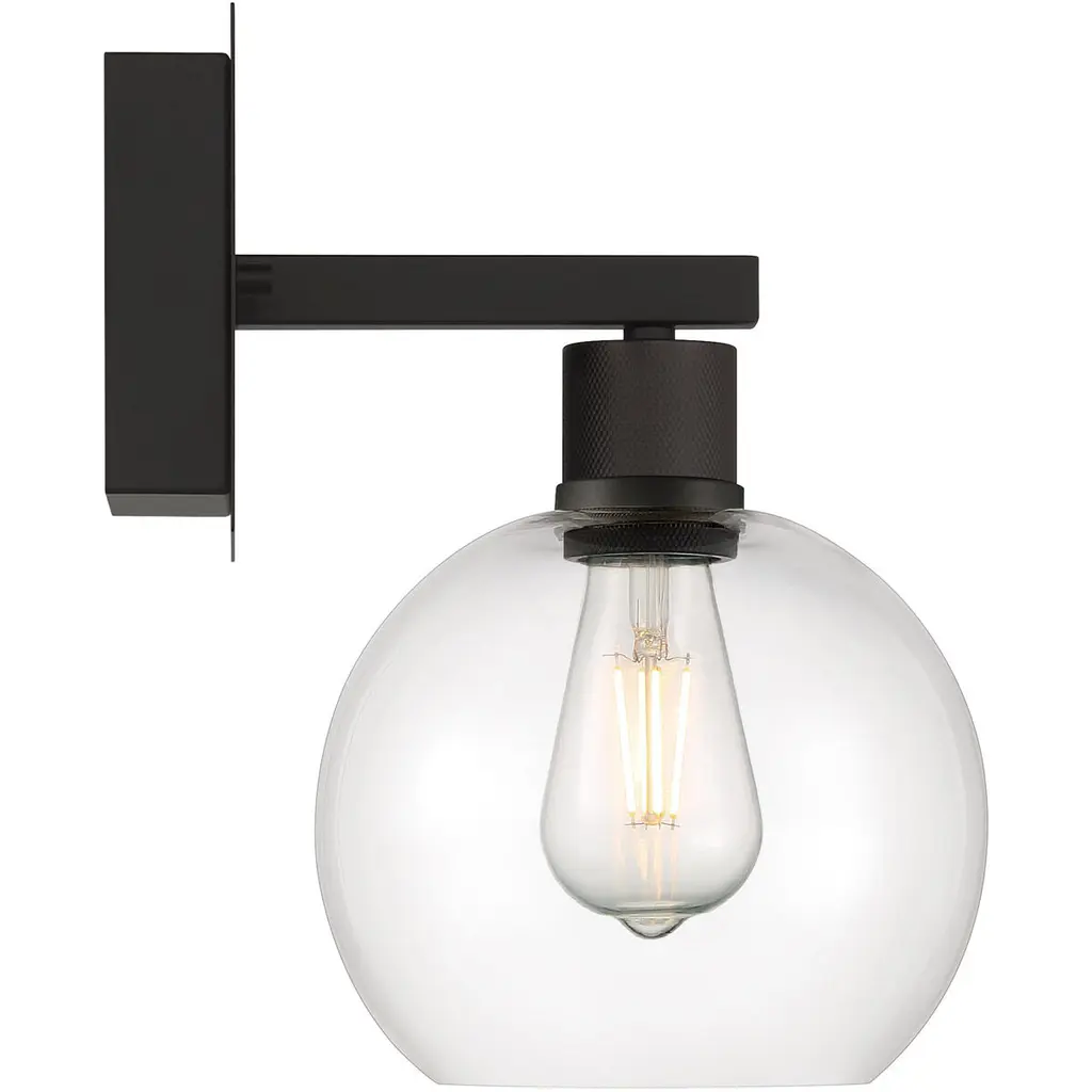 Port Nine Burgundy LED Wall Sconce - Matte Black - Clear Glass - Replaceable LED