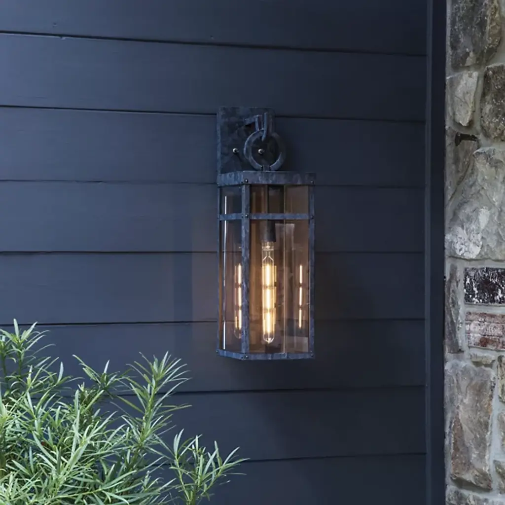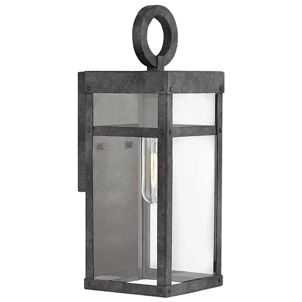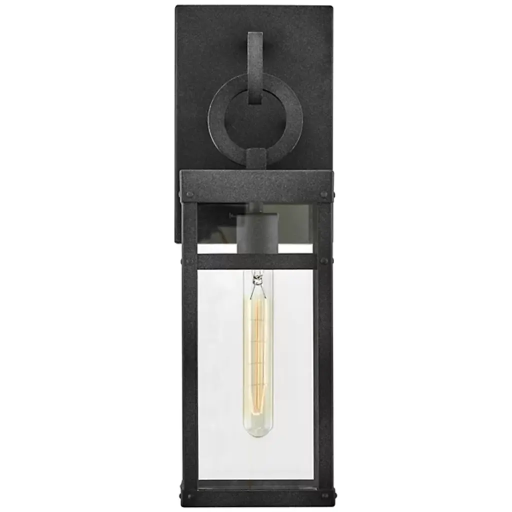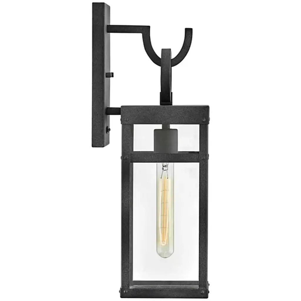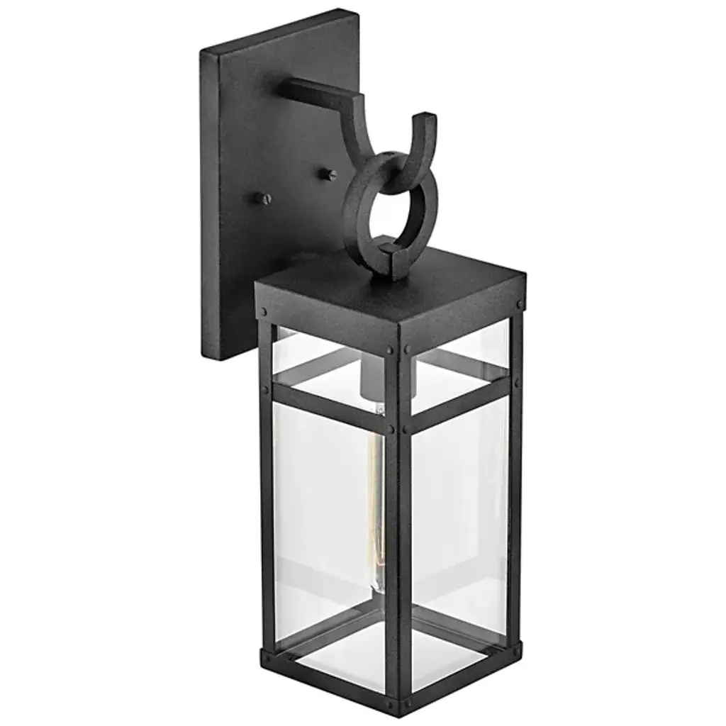 The Hinkley Lighting Porter Outdoor Wall Sconce is a chic fusion of the Arts and Crafts, Modern Farmhouse and Industrial styles. The bold hardware and sturdy hangar loop uplift the piece, providing a visual balance to the minimal frame. The clear glass provides a view of the tubular bulb, use with an antique reproduction bulb for a retro spin.