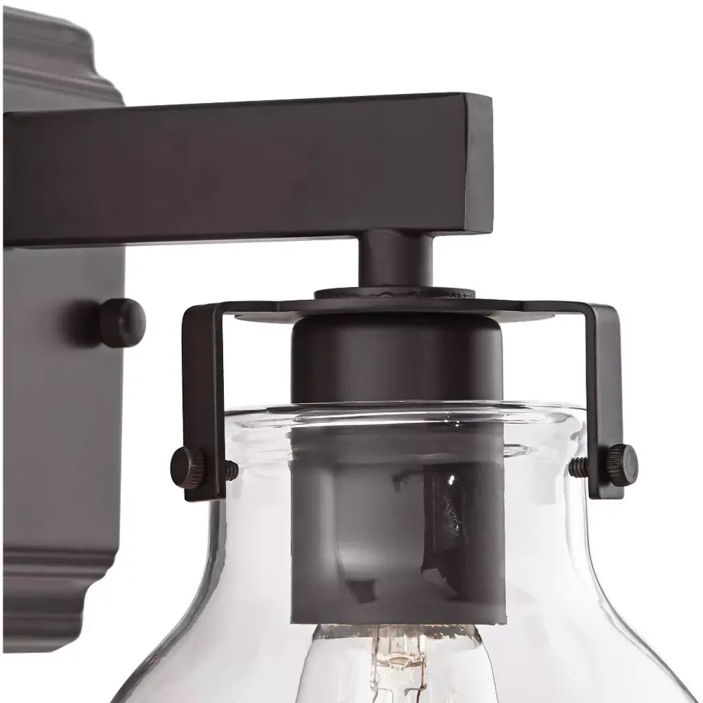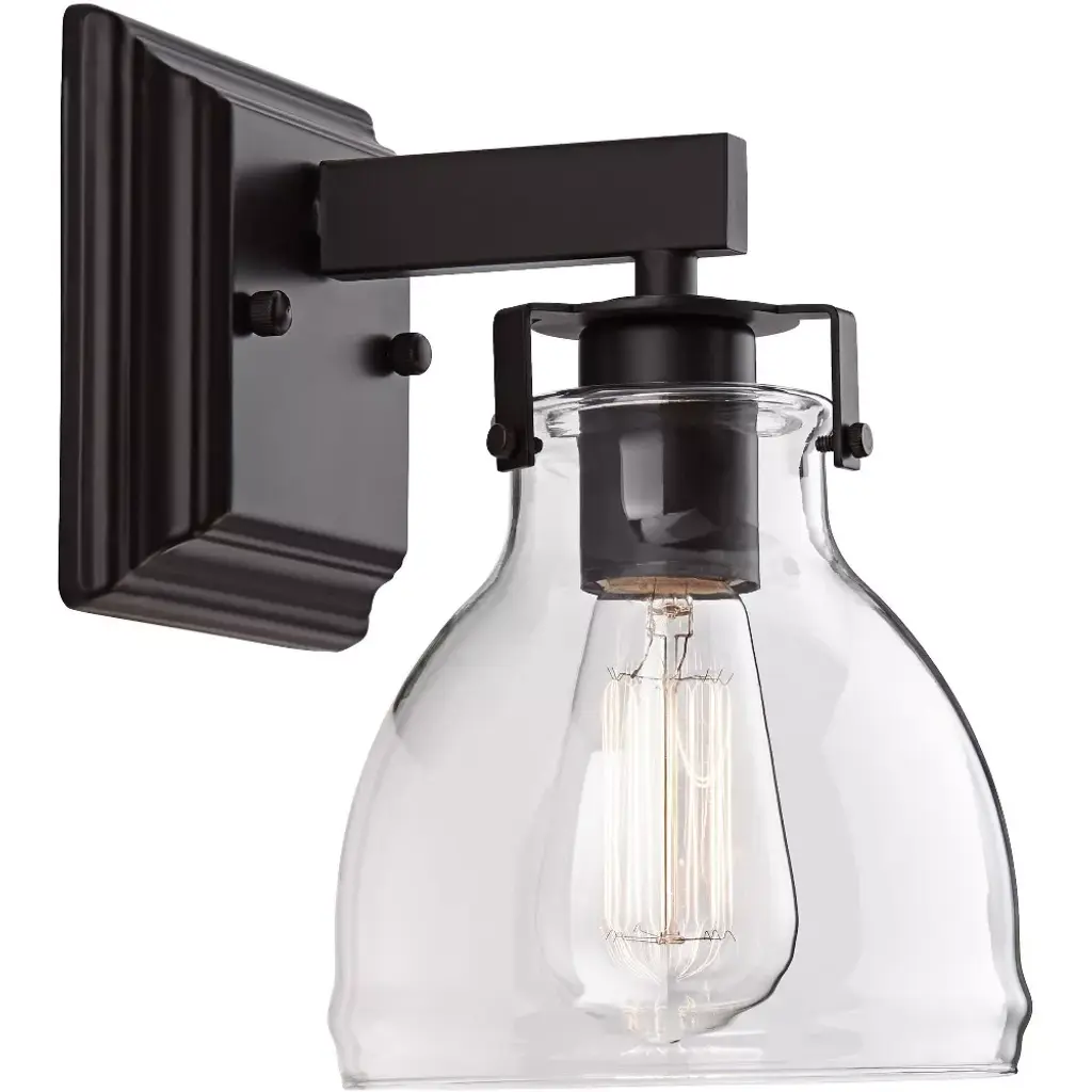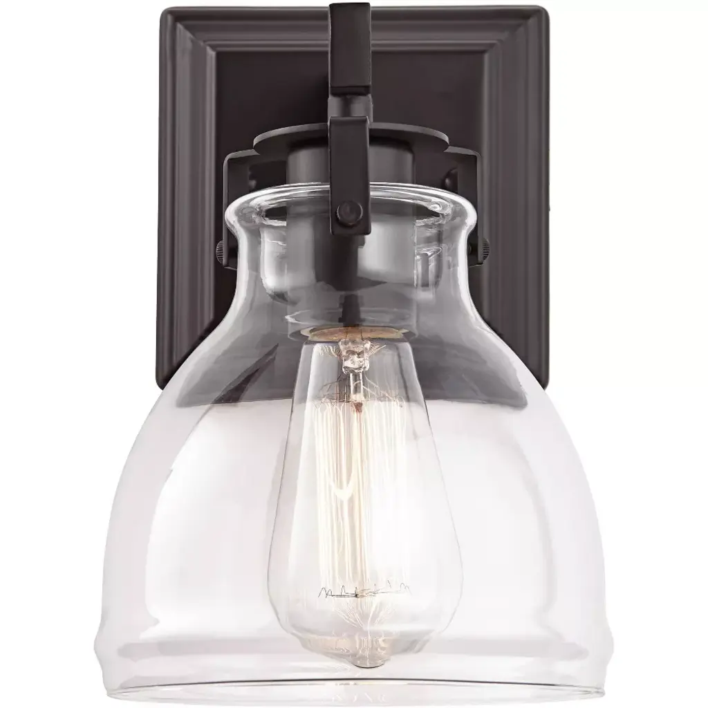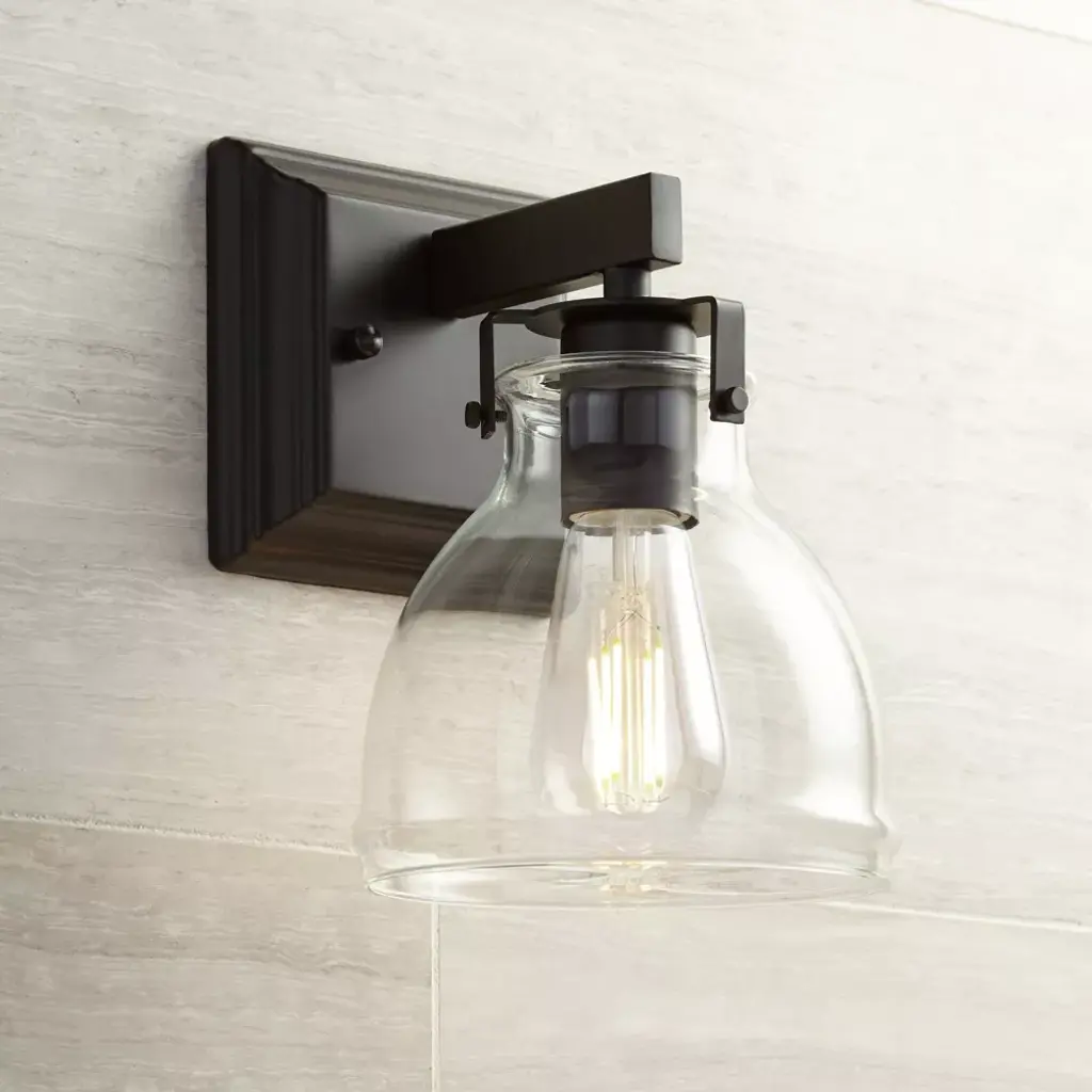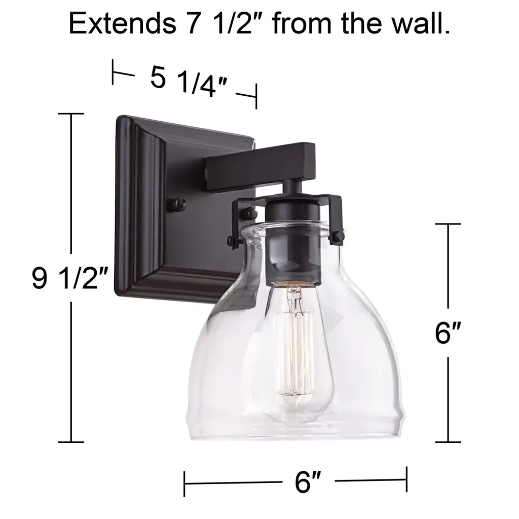 Possini Euro Design Bellis Industrial Modern Wall Light Sconce Bronze Hardwire 6" Fixture Clear Glass Shade For Bedroom Bedside Bathroom Vanity Home