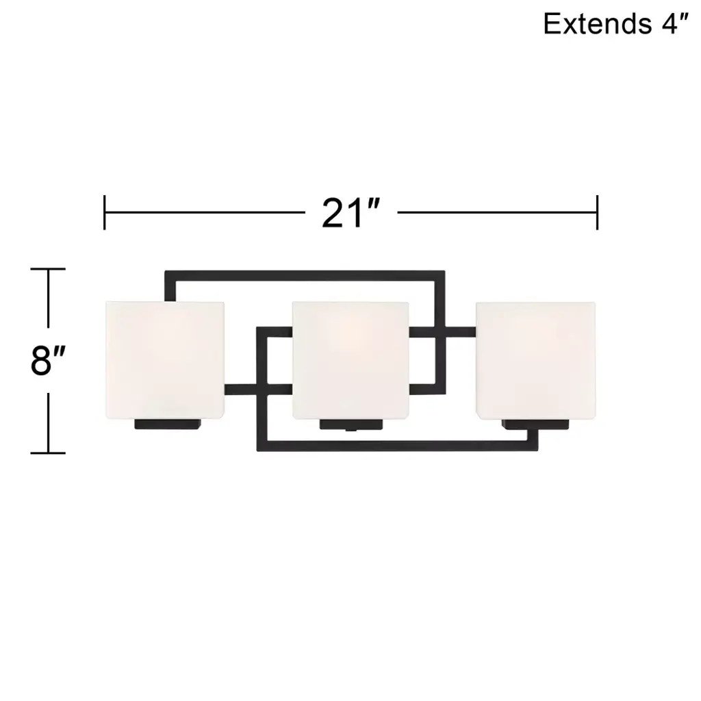 Possini Euro Design Lighting On The Square Modern Wall Light Matte Black Hardwire 21" 3-light Fixture Opal Glass Shade For Bedroom Bathroom Vanity