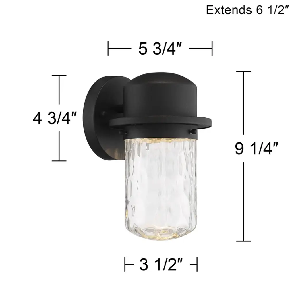 Possini Euro Design Modern Outdoor Wall Light Fixture Led Textured Black 9 1/4" Clear Hammered Glass For House Porch Patio Deck