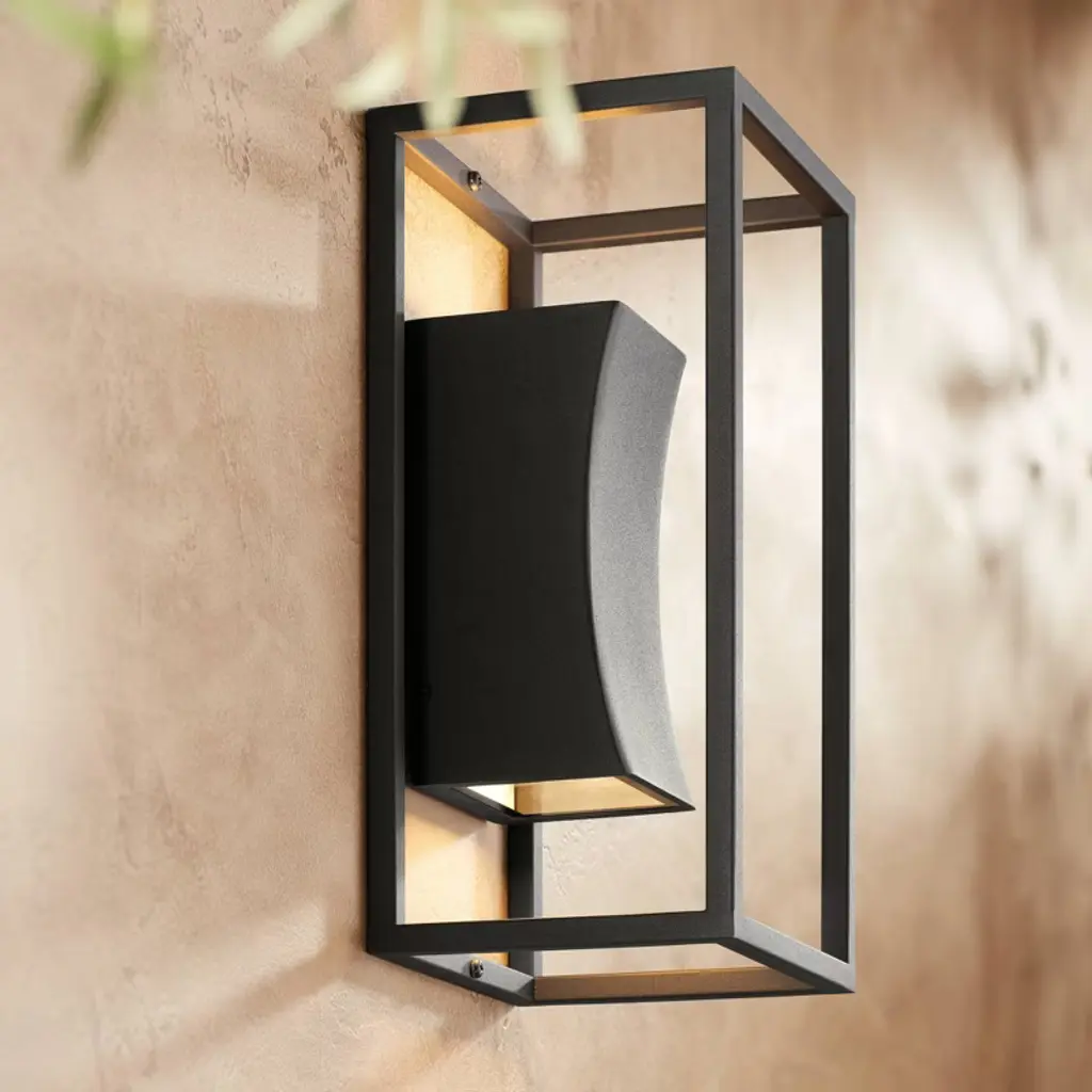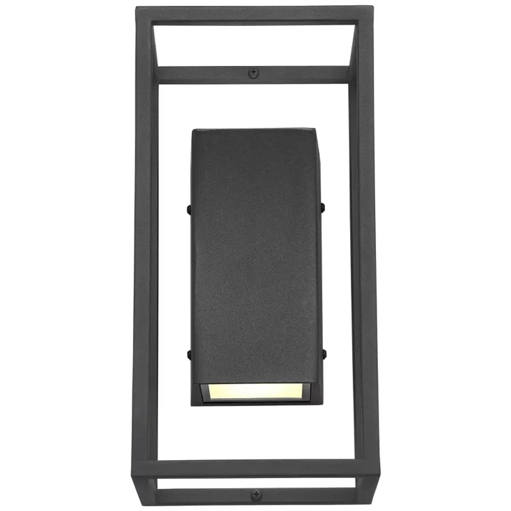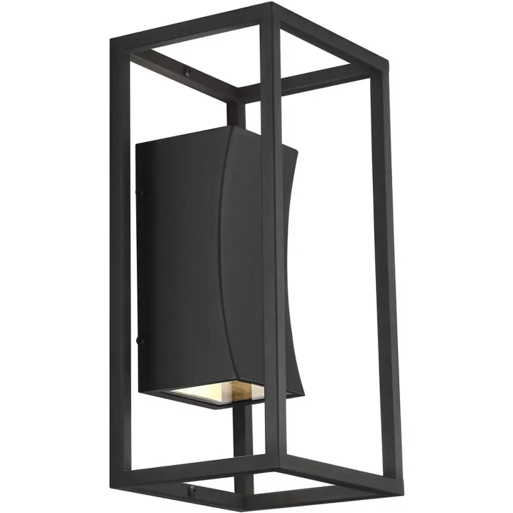 Cast lovely illumination with this two-light energy-efficient LED wall light. From Possini Euro Design®, this light boasts a metal framework in a textured black finish. Its design shows off an open box shade that creates geometric flair in transitional or contemporary decor. A sanded glass diffuser softens its illumination and this light may be installed with its light pointing up or down to best suit your space. Wet location rated for outdoor use, but not suitable for coastal areas with salt water exposure.