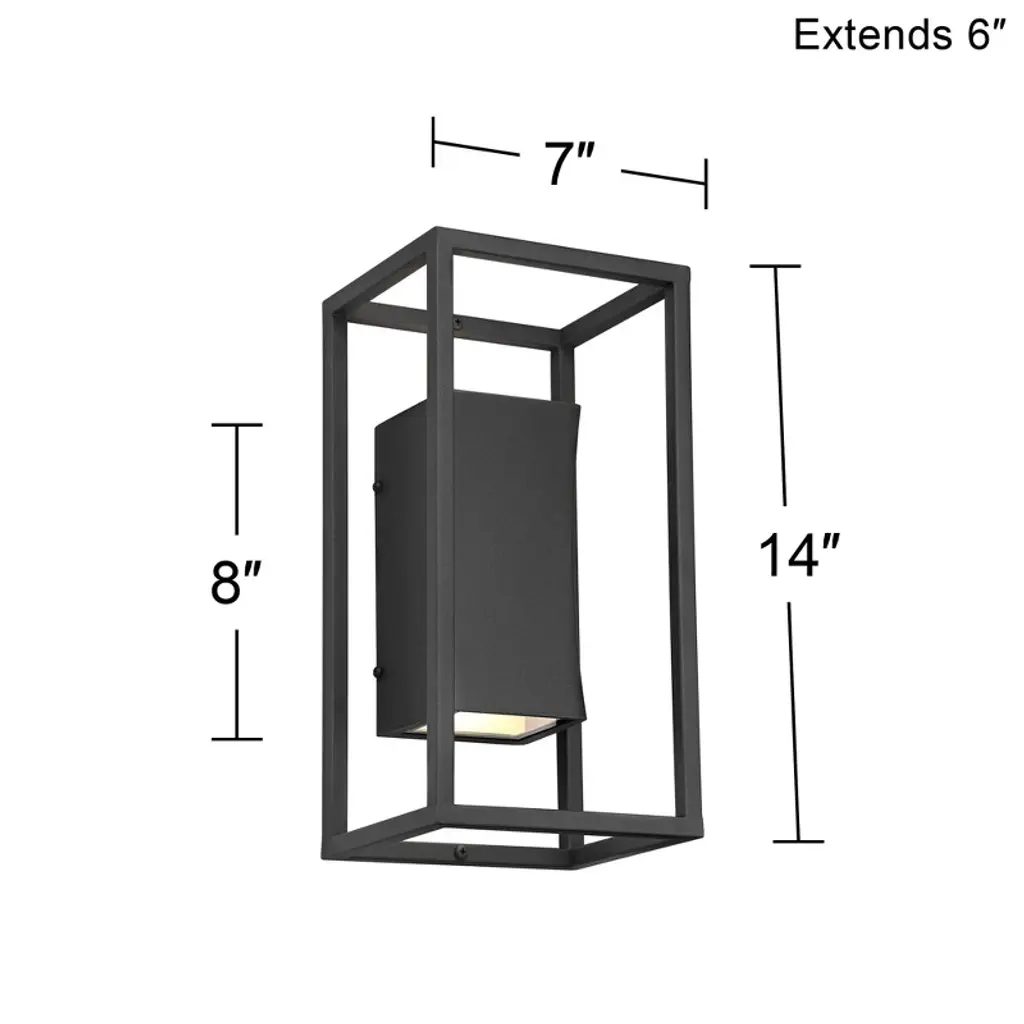 Possini Euro Design Modern Outdoor Wall Light Fixture Textured Black Dimmable Led Up Down 14" Sanded Glass Diffuser Up Down For Exterior Barn Deck
