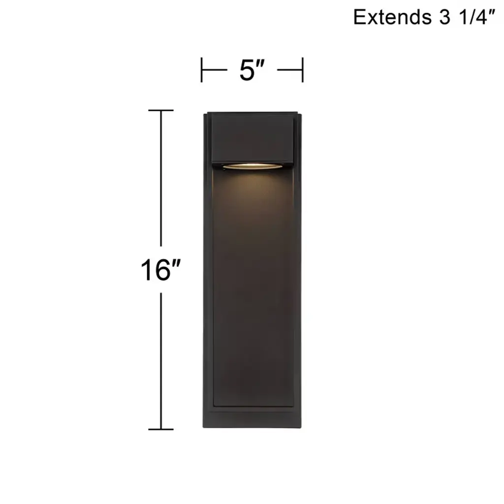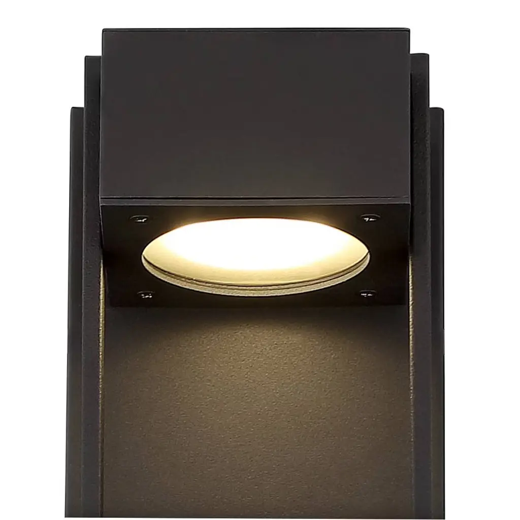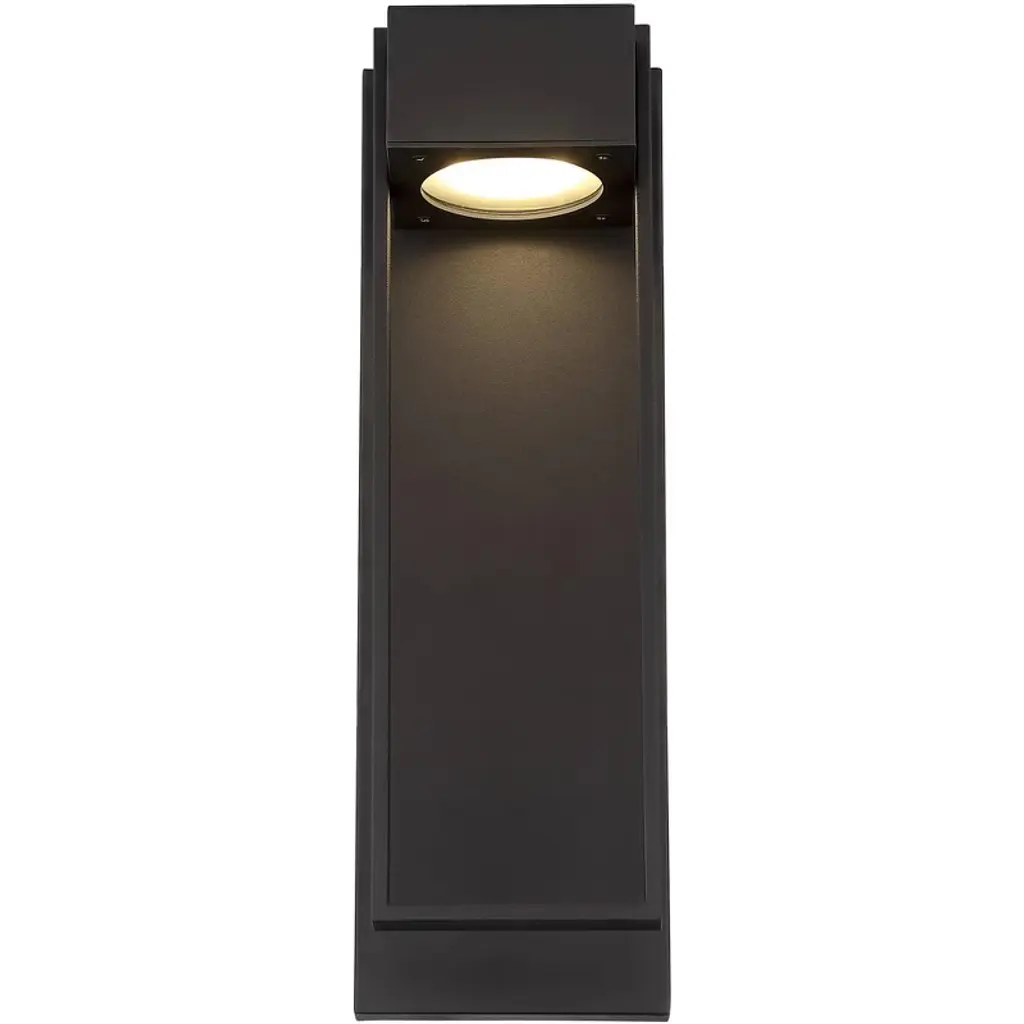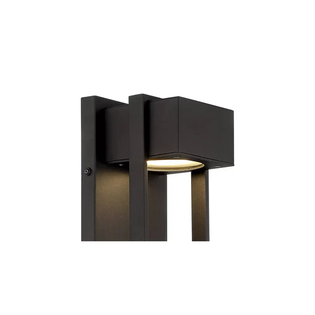 Get a cutting-edge modern design with this outdoor wall light. It comes in a textured black finish over a straight-edged steel frame, resulting in a handsome contemporary look. An energy-efficient LED module with a round crystal diffuser is built directly into the frame. This fixture is designed for vertical installation only.