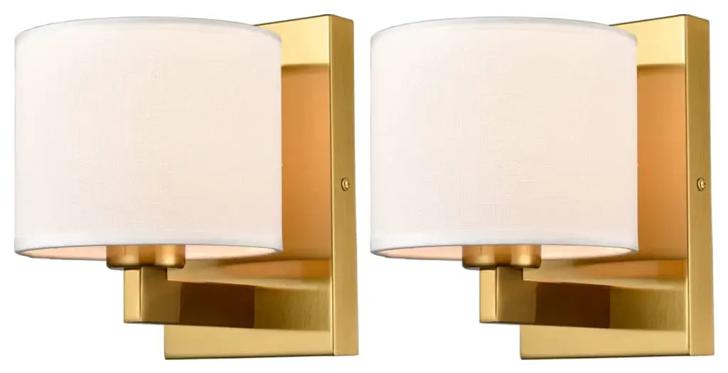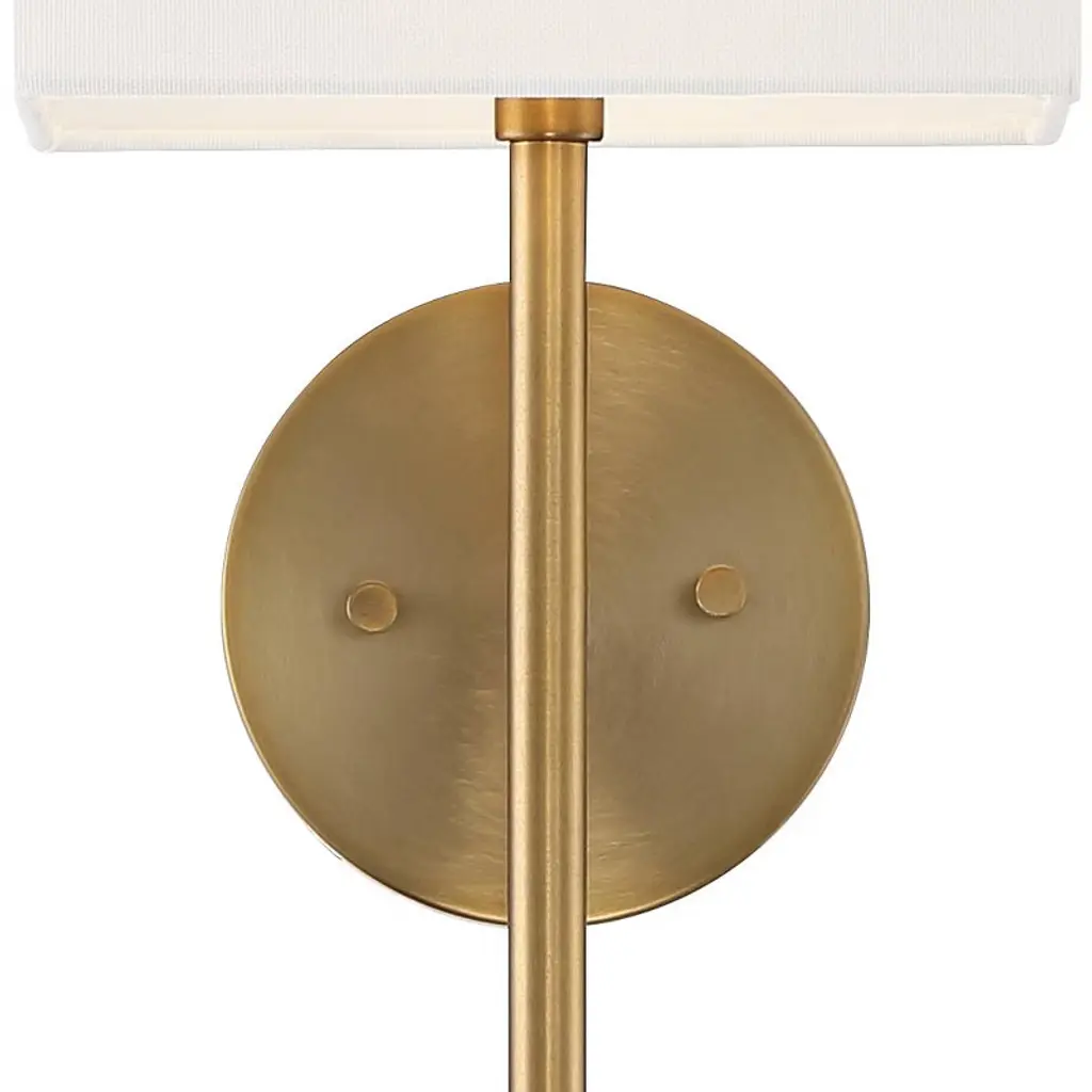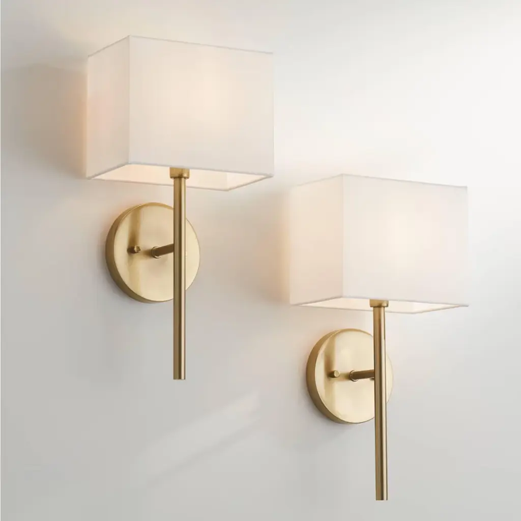 By Possini Euro Design®, this set of two contemporary warm brass wall sconces is a sophisticated choice for a living area or hallway. It shows off a classic troch profile updated for modern living with clean lines and a rectangular shade complementing a round wall plate. An inviting warm brass finish adds sophisticated flair while a linen shade ensures soft, appealing illumination.