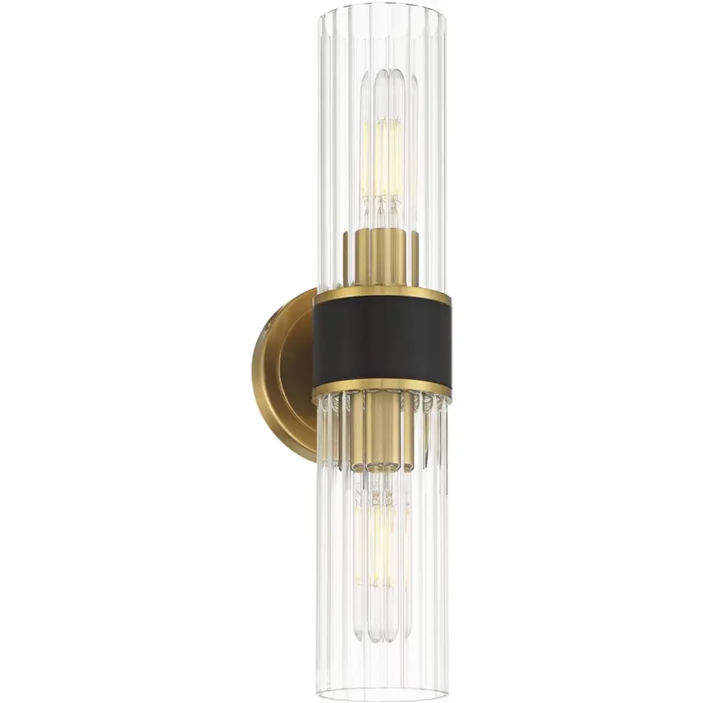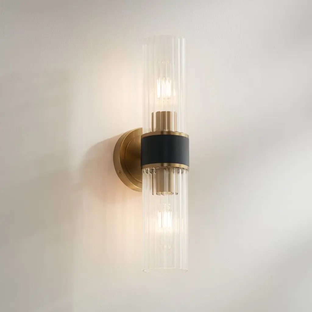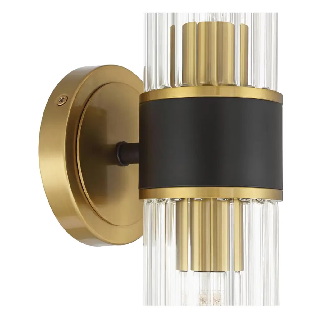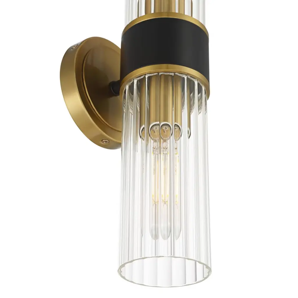 From the Possini Euro Design® brand, the Idyl bath bar is a versatile choice for your modern home. With vintage inspiration present in the mixed metals appeal and clear ribbed glass shades, this design features a combination of warm gold and matte black finishes. Frame a mirror with a pair of this light installed vertically, or turn it horizontal to complete a vanity space. The Idyl wall light is damp location rated for indoor use, perfectly suited for any room in your home.