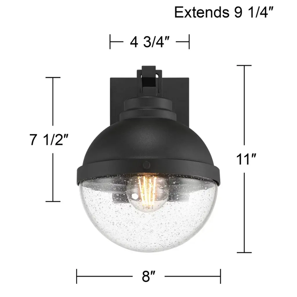 Durable and versatile is the name of the game with the Sargasso wall sconce from the Possini Euro Design® brand. This compact wall light is a perfect fit in any room in your home, versatile enough or multiple styles. A classy sand black finish provides an element of industrial modern charm, and is paired with clear seedy glass for an all-weather look and feel.