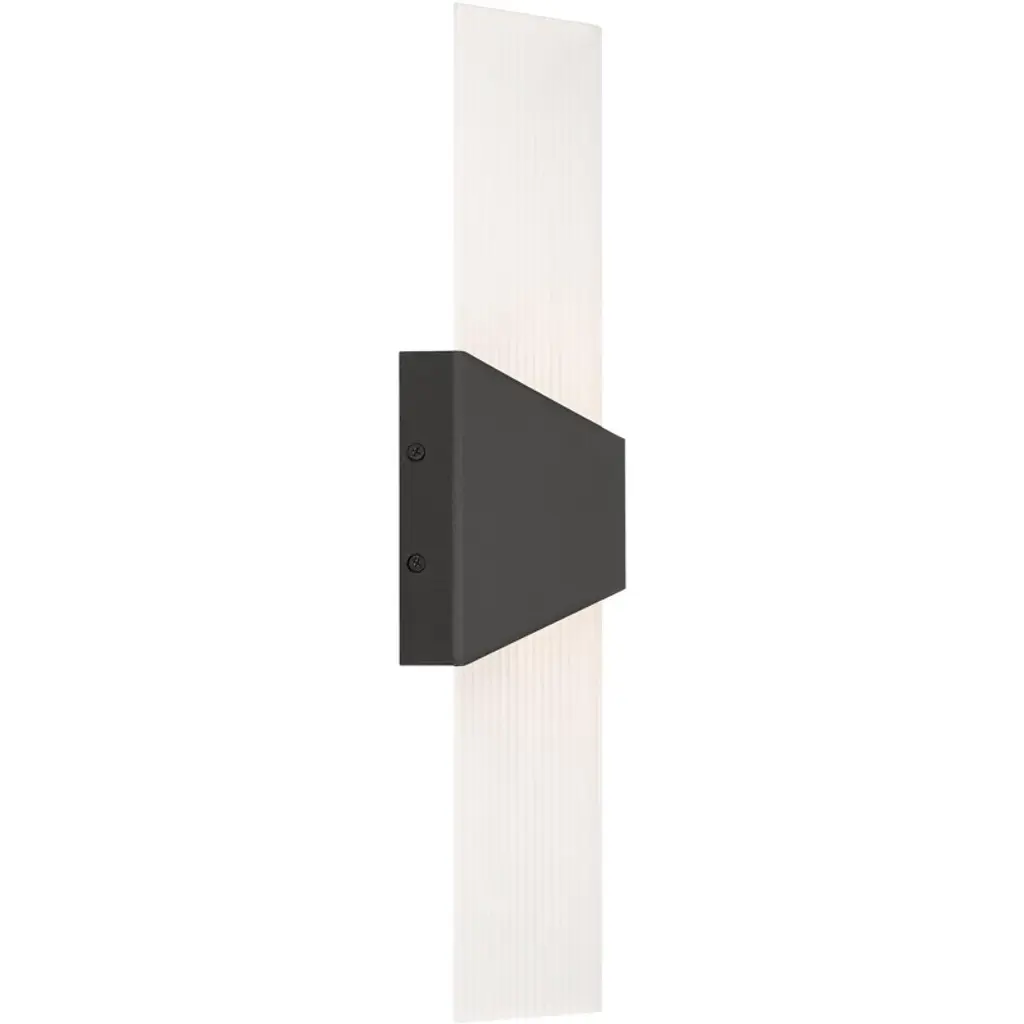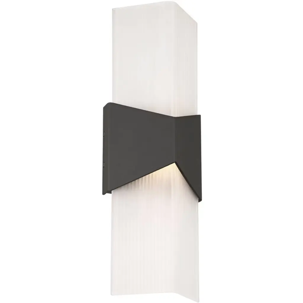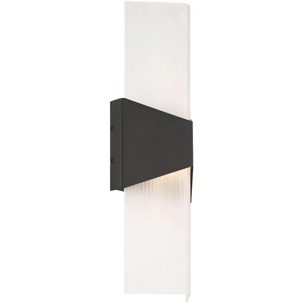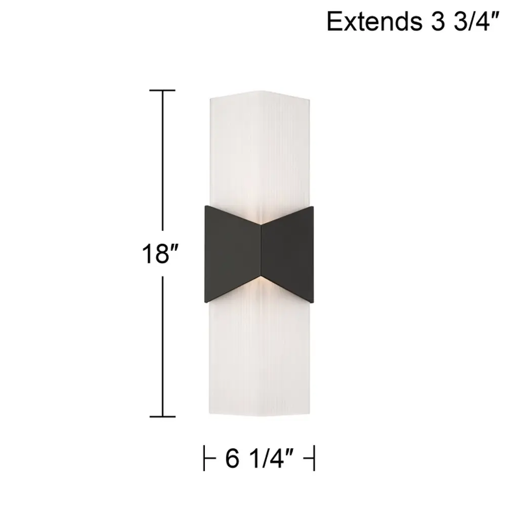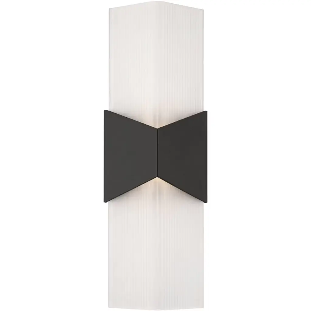Dress up your home in class with the Tux wall sconce from the Possini Euro Design® brand. This modern minimalist design is ready for a night out on the town with a black finish aluminum construction, shaped in a classic bowtie style, against a semi-opaque white ribbed glass shade as the dress shirt. Wet location rated, this design is perfectly suited for indoor use, and can be mounted both vertically or horizontally.