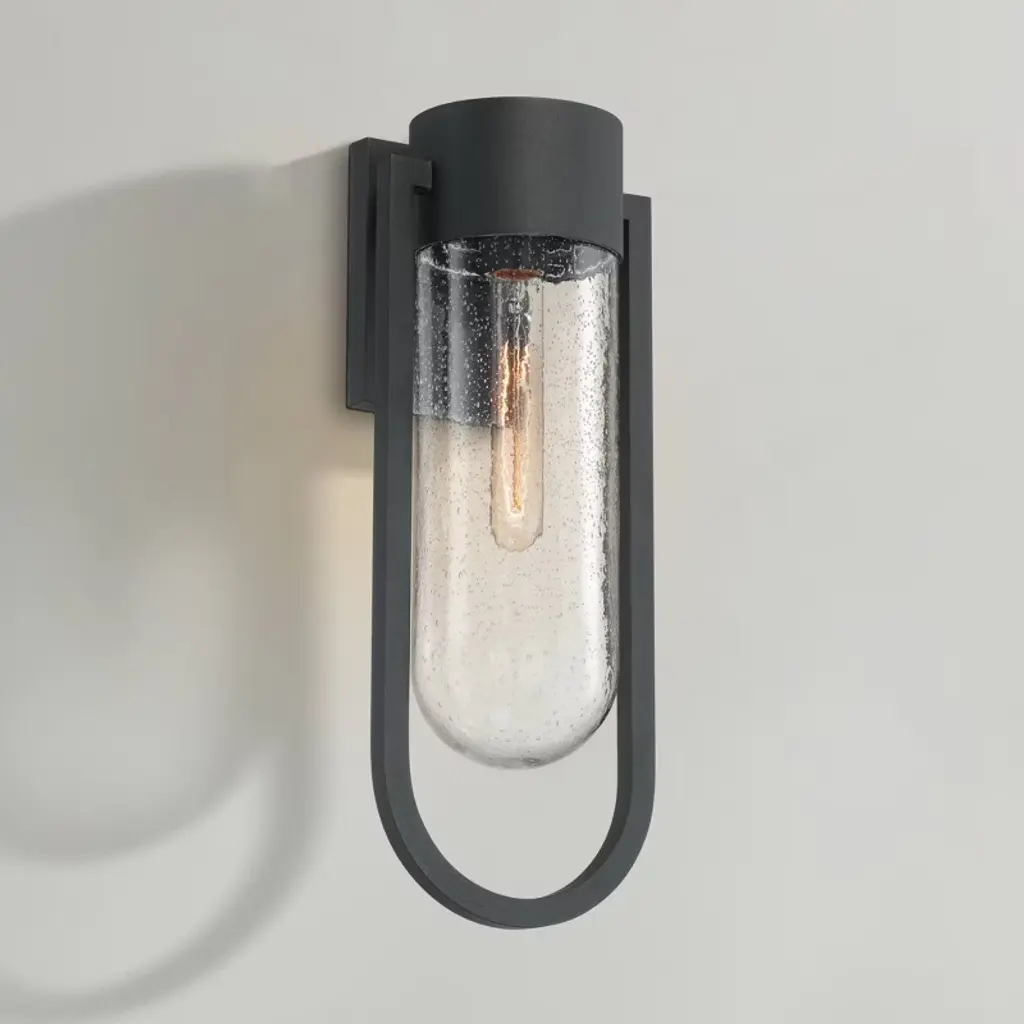 Illuminate the night with the Villa Lane wall sconce from the Possini Euro Design® brand, ideal for enhancing your home. This stylish design comes in a classy sand black finish paired with seedy clear glass housing the single bulb. The Villa Lane sconce is wet location rated, perfect for any room in your home.
